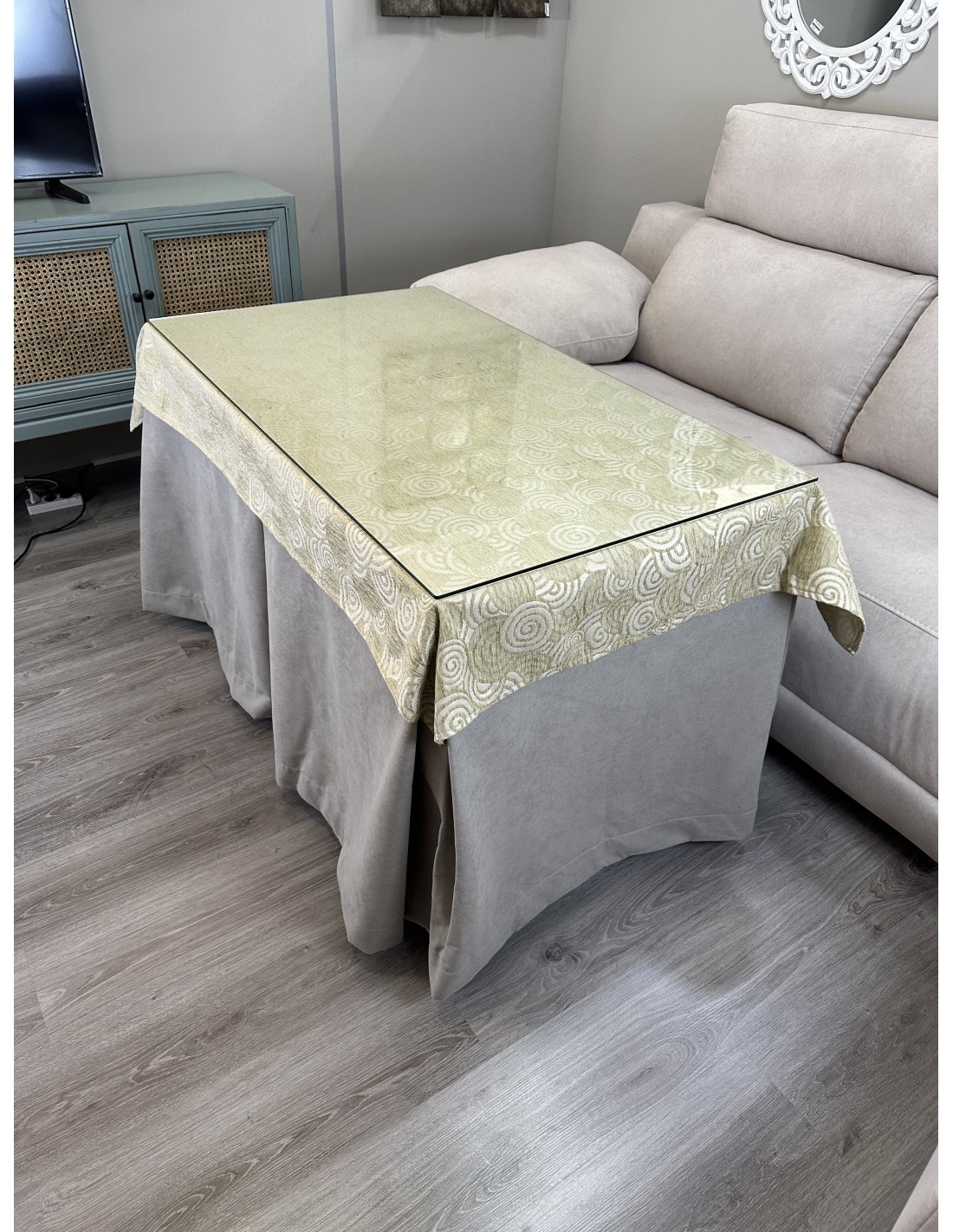 Ropa de Mesa de Camilla Antimanchas Aterciopelada Triple Grueso Nature Beige con Tapete Deluxe Círculos Beige