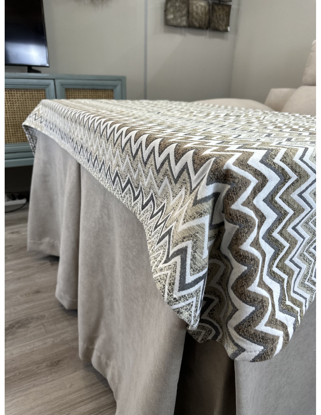 Ropa de Mesa de Camilla Antimanchas Aterciopelada Triple Grueso Nature Beige con Tapete Deluxe Tierra