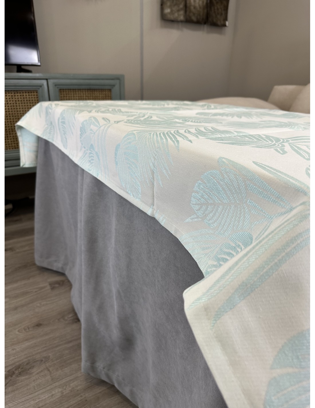 Ropa de Mesa de Camilla Antimanchas Aterciopelada Triple Grueso Nature Gris con Tapete Deluxe Palmeras Azul