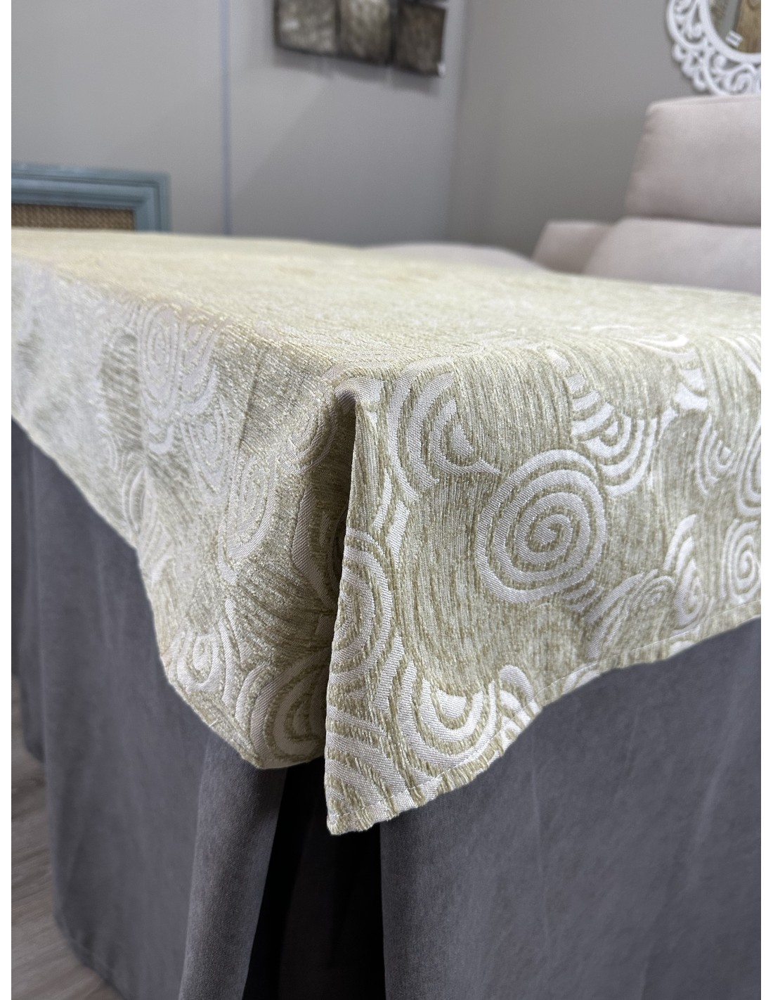 Ropa de Mesa de Camilla Antimanchas Aterciopelada Triple Grueso Nature Marrón con Tapete Deluxe Círculos Beige