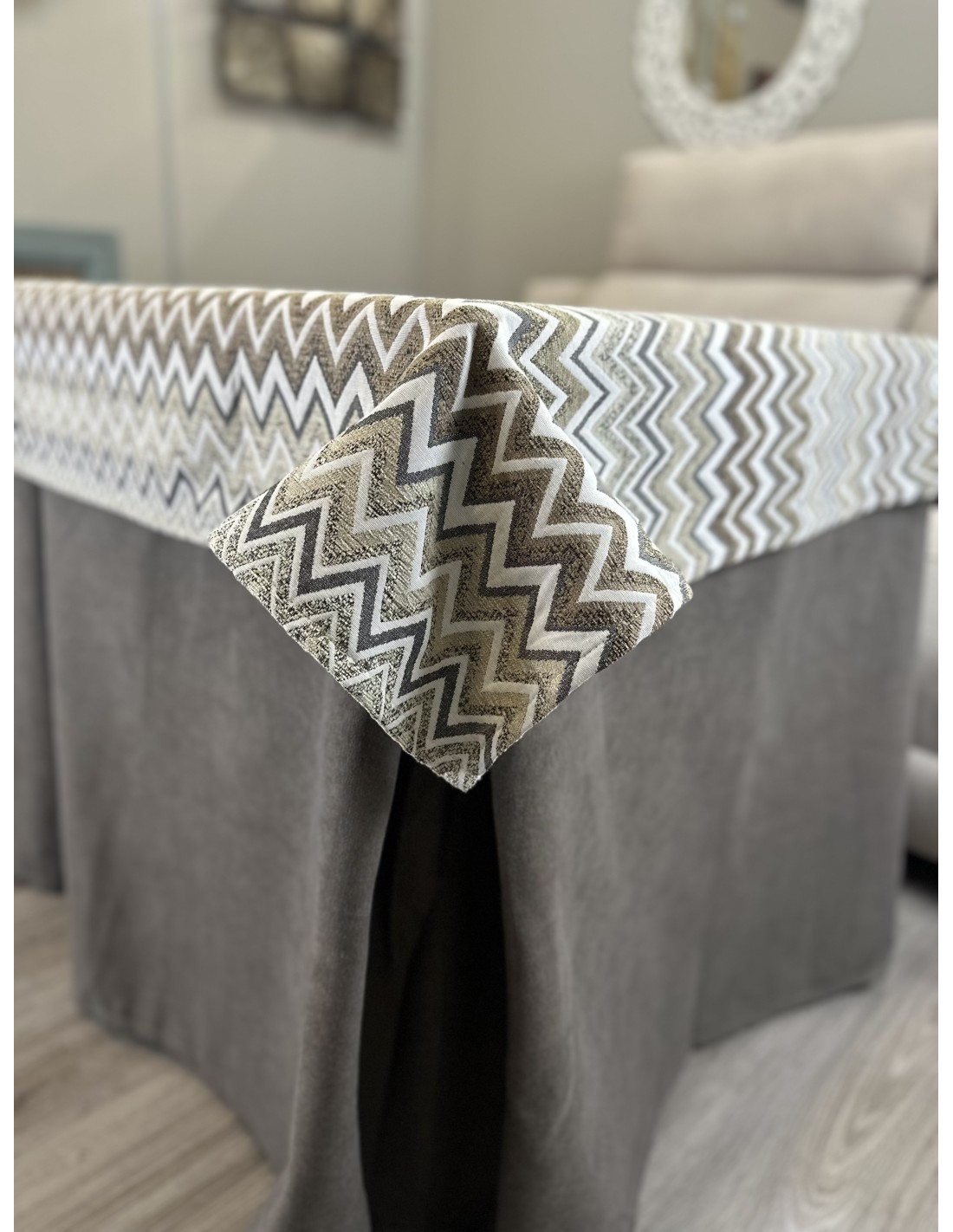 Ropa de Mesa de Camilla Antimanchas Aterciopelada Triple Grueso Nature Marrón con Tapete Deluxe Tierra