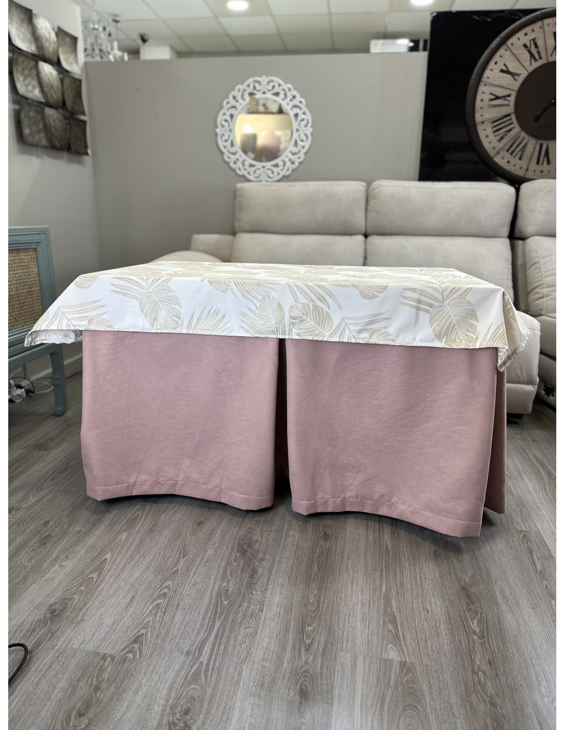 Ropa de Mesa de Camilla Antimanchas Aterciopelada Triple Grueso Nature Rosa con Tapete Deluxe Palmeras Gris