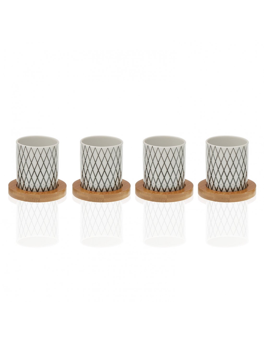 SET 4 TAZAS TE CON BASE BAMBU