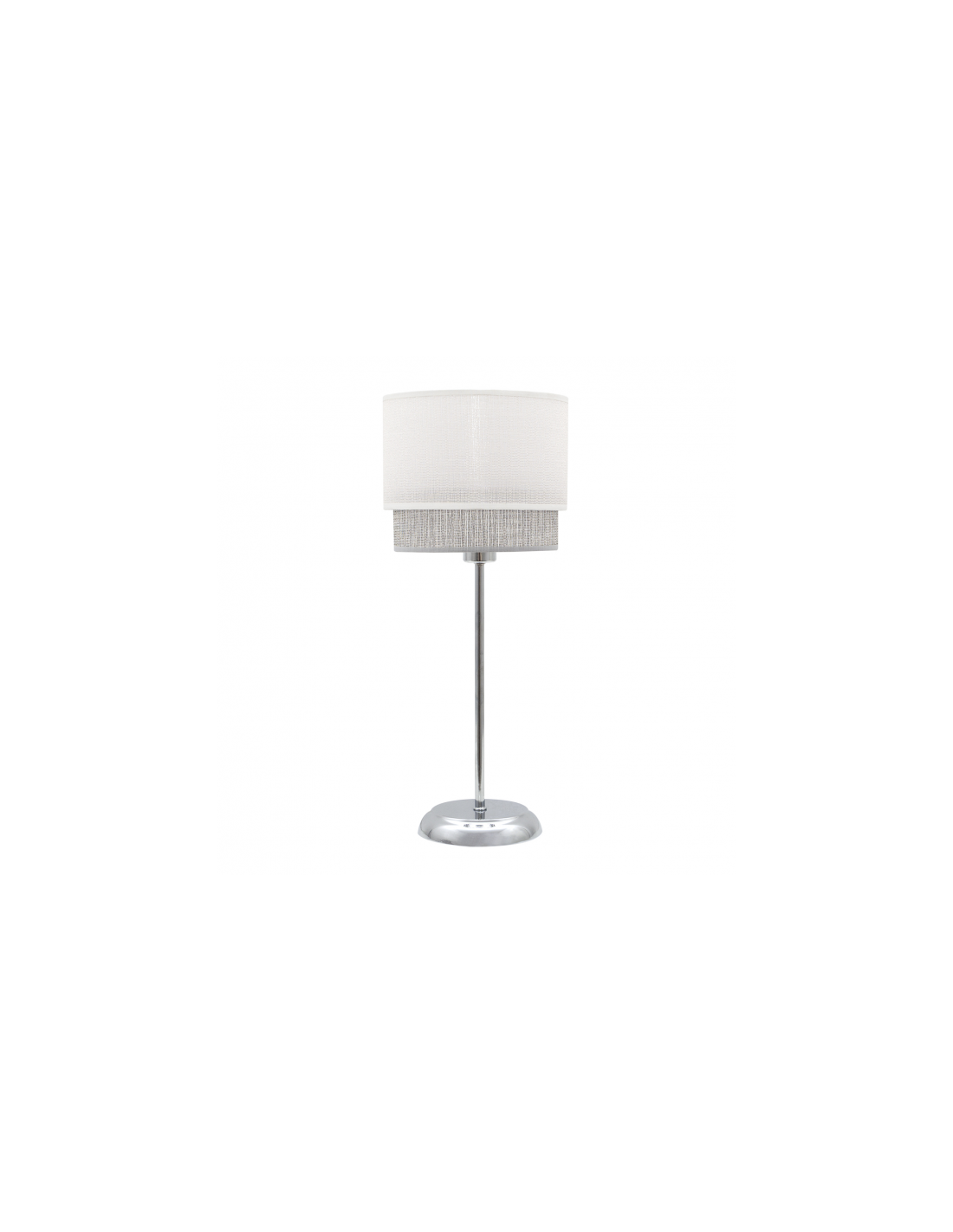 Sobremesa serie Kenya en color blanco/gris. Su diámetro mayor es de 18 cm. Utiliza un porta lámparas E14. Recomendamos bombillas de tecnología LED de color de luz de 4000ºk. Puede combinarlo con el colgante de 50 y 40 cm, lámpara de dos, tres, cuatro luces y pie salón en blanco/gris y gris/blanco.
