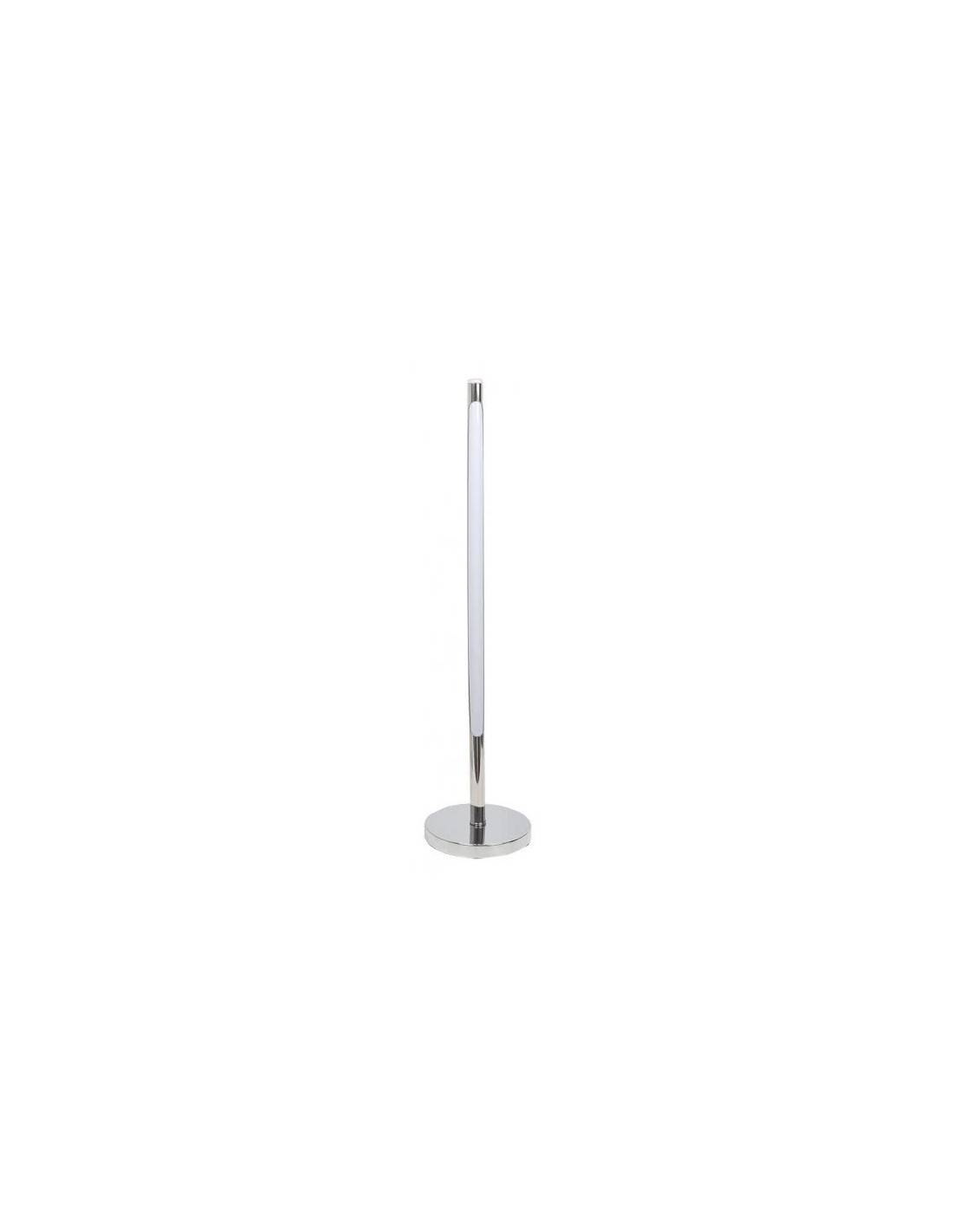 Moderno sobremesa con tecnología LED integrada, realizado en metal cromado. Tiene unas medidas de 72x16x16 centímetros y un peso neto de 1600 gramos. Su potencia de luz es de 16 watios, 1280 lúmenes y 4000K.