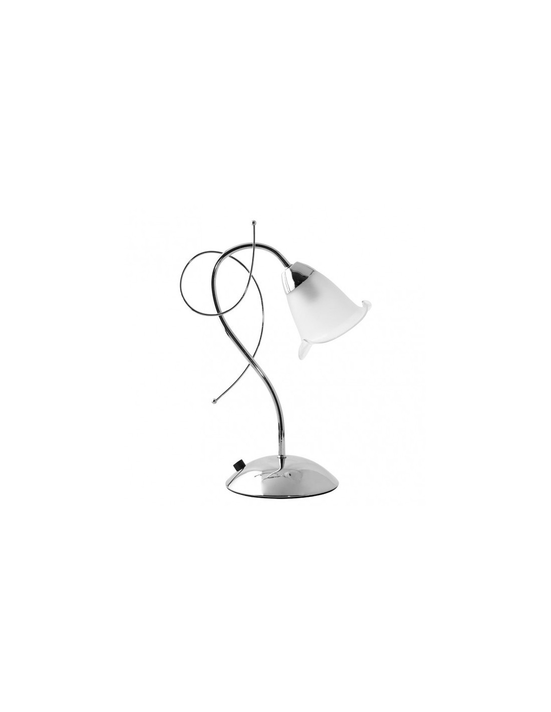 Sobremesa serie ADELFA de color CROMO. Se caracteriza por su diseño clásico, original y elegante donde la tulipa en color blanco nos recuerda a una campanilla. Realizada con cuerpo de metal y tulipa de cristal. Posee un portalámpara E14. Bombilla no incluida. Tiene una dimensión de 38x15x26 centímetros. Esta serie se complementa con el aplique, lámpara de tres luces y lámpara de cinco luces. Esta misma serie también la podemos encontrar en color marrón y en color cuero.