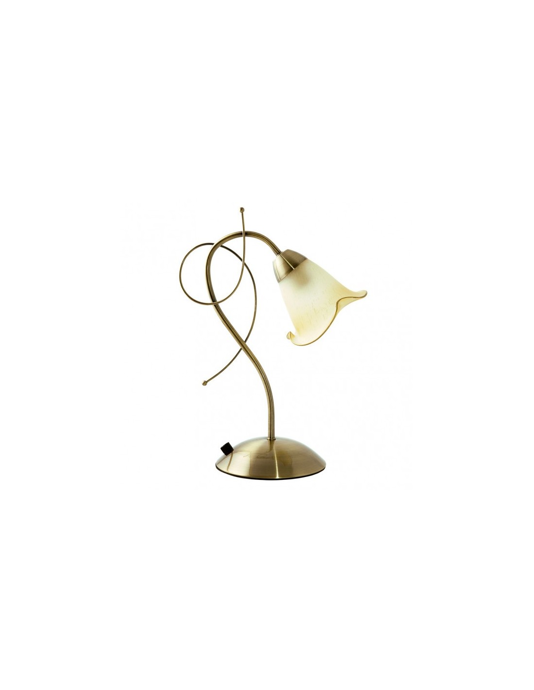 Sobremesa serie ADELFA de color CUERO. Se caracteriza por su diseño clásico, original y elegante donde la tulipa en color beis nos recuerda a una campanilla. Realizada con cuerpo de metal y tulipa de cristal. Posee un portalámpara E14. Bombilla no incluida. Tiene una dimensión de 38x15x26 centímetros. Esta serie se complementa con el aplique, lámpara de tres luces y lámpara de cinco luces. Esta misma serie también la podemos encontrar en color marrón y en color cromo.
