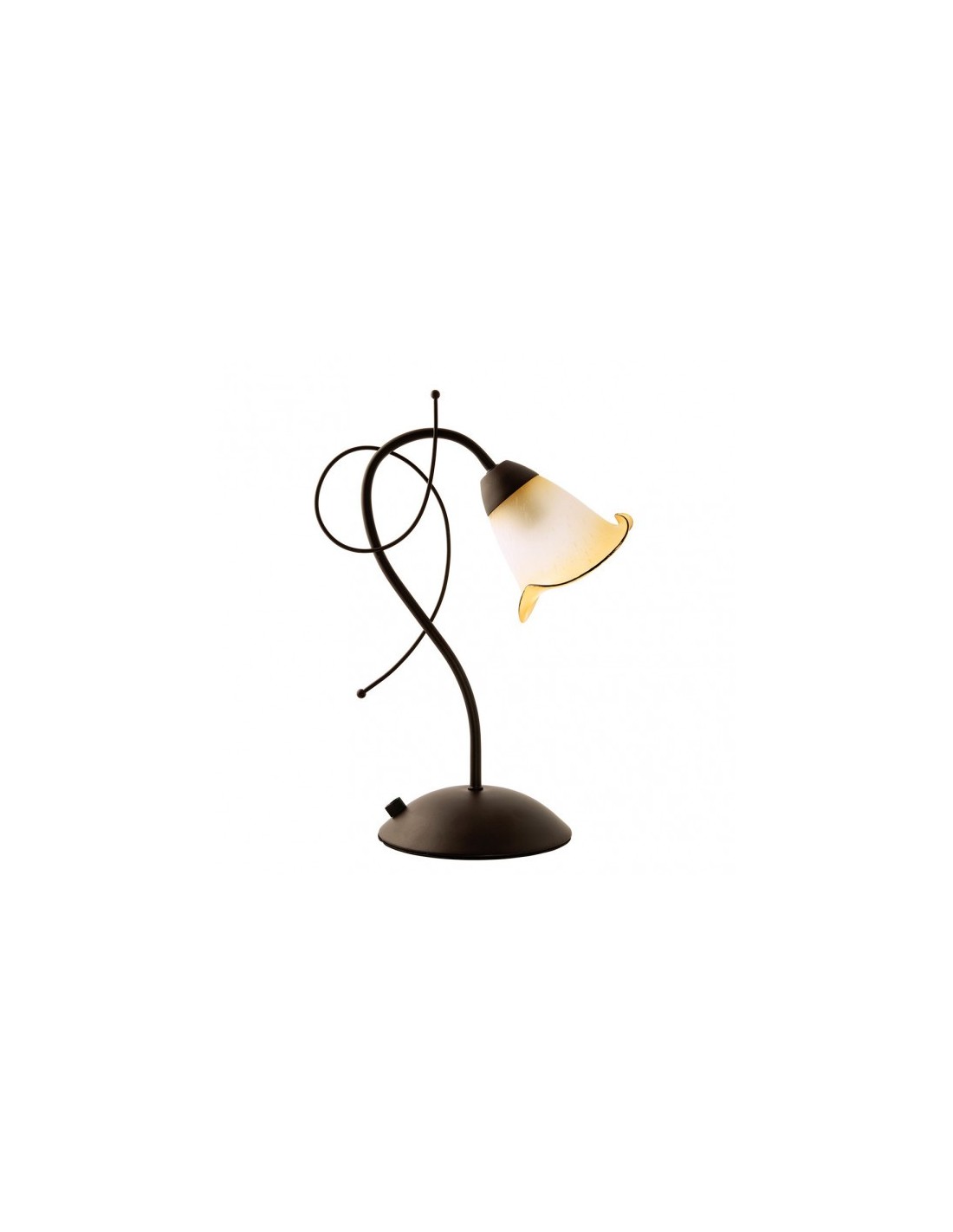 Sobremesa serie ADELFA de color MARRON. Se caracteriza por su diseño clásico, original y elegante donde la tulipa en color ámbar y bordes ahumados nos recuerda a una campanilla. Realizada con cuerpo de metal y tulipa de cristal. Posee un portalámpara E14. Bombilla no incluida. Tiene una dimensión de 38x15x26 centímetros. Esta serie se complementa con el aplique, lámpara de tres luces y lámpara de cinco luces. Esta misma serie también la podemos encontrar en color cuero y en color cromo.