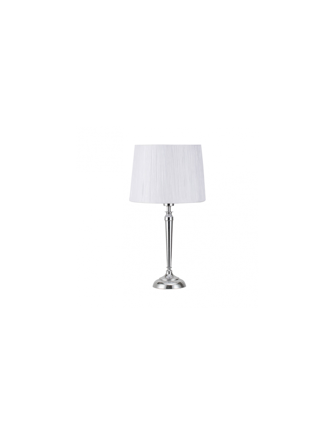 Sobremesa serie Álamo en color CROMO de estilo clásico, sencillo y elegante con pantalla textil acabado en bambula Blanca. Portalámparas E27. Bombilla no incluida. Tiene una medida de 55X30X30 centímetros. Modelo también disponible en color Cuero/Beis.
