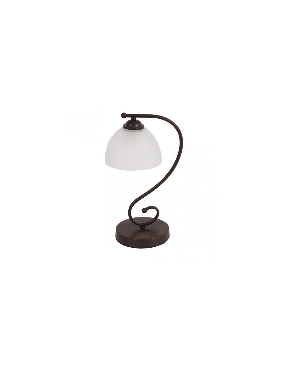 Sobremesa de la serie BONETE en color MARRÓN y con tulipa opaca en blanca. Realizado en metal y cristal. Se caracteriza por la originalidad de sus formas redondeadas en su estructura, de la que cuelga su tulipa que nos recuerda a una campanilla. Ideal para iluminar en dormitorios, salones e incluso mesas de trabajo de estancias decoradas con estilos tanto Románticos como Rústico Urbano, acorde también con decoraciones Vintage. Posee un porta lámparas E27. Bombilla no incluida. Tiene unas dimensiones de 36x15x20 centímetros. En esta serie podemos encontrar la lámparas de cinco, tres y dos luces y el sobremesa, todo a juego.