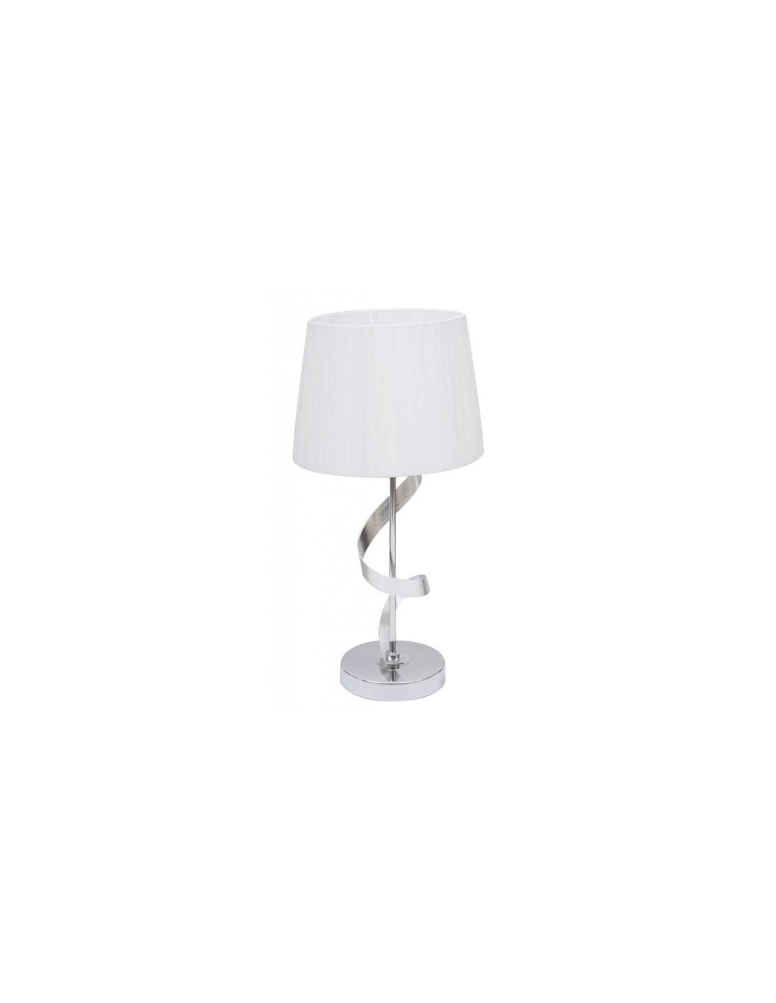 Sobremesa serie Cleveland de color cromo. Realizado en metal y textil con un portalámparas E27. Destaca el detalle en espiral en el armazón. Sus dimensiones son 52X24X24 cm. Se puede completar la serie con la lámpara de tres y cinco luces y aplique de una y dos luces en el mismo color.