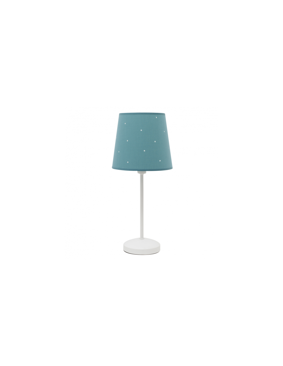 Sobremesa serie Consciencia en color turquesa. Realizado en metal y material textil, es ideal para ambientes infantiles. El perforado de la pantalla crea un juego lumínico muy interesante. Sus dimensiones son 47x20x20 cm. Portalámparas E14. Disponible en varios colores. Puede completar la serie con el colgante y lámpara de dos luces ya sea en color turuesa o combinando con otros colores.