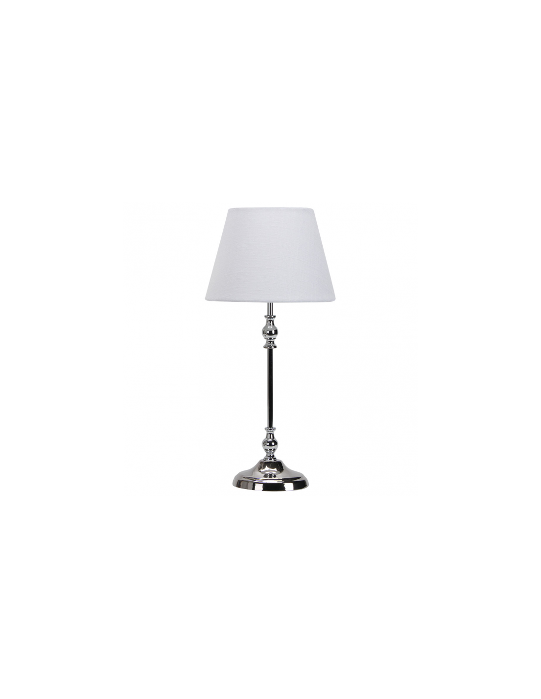 Sobremesa serie Corydoras en color CROMO de estilo clásico, sencillo y elegante con pantalla Blanca. Portalámparas E27. Bombilla no incluida. Tiene una medida de 54X25X25 centímetros. Modelo también disponible en color Marrón Rústico/Beis.