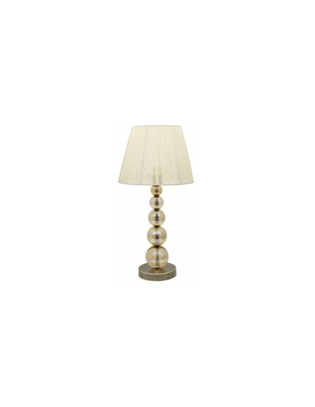 Sobremesa cristal RIN realizado en metal color cuero y pantalla en textil beis. Tiene unas medidas de 50X25X25 centímetros y un peso neto de 2430 gramos. Portalámparas E27.