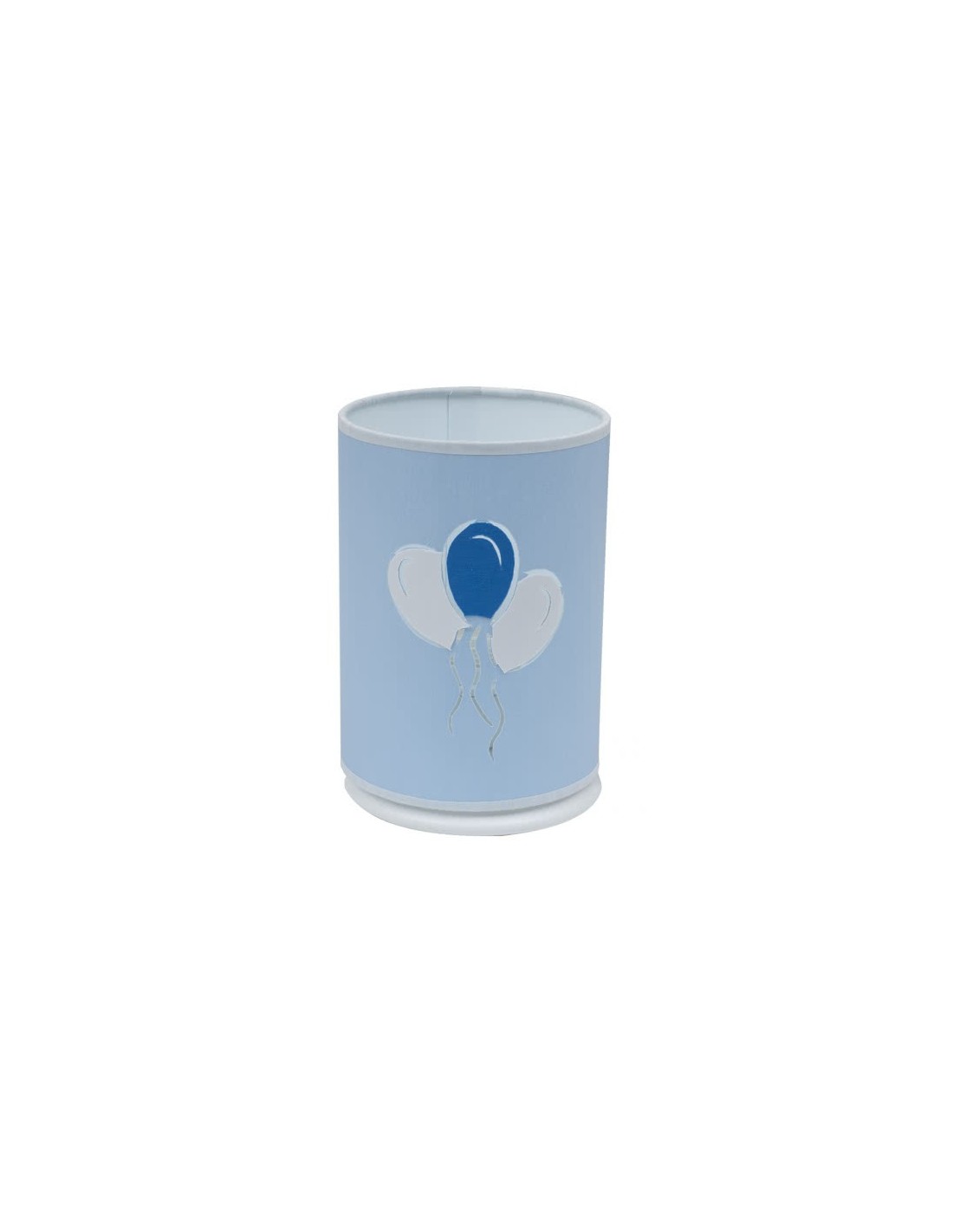 Sobremesa serie GLOBITOS con base de metal y pantalla diseñada en textil de color celeste decorada con globos. Su medida es de 20x13x13 centímetros y tiene un peso neto de 420 gramos.Portalámparas E27.Ideal para dormitorio infantil para alegrar e iluminar a los más peques de la casa.