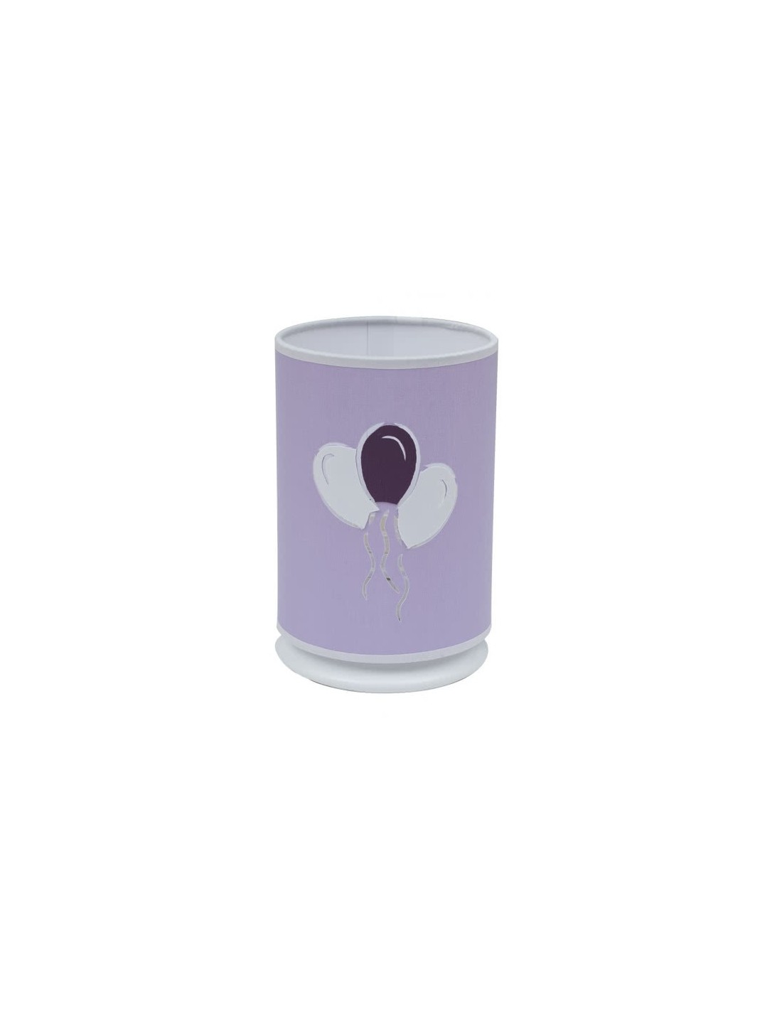Sobremesa serie GLOBITOS con base de metal y pantalla diseñada en textil de color lila decorada con globos. Su medida es de 20x13x13 centímetros y tiene un peso neto de 420 gramos.Portalámparas E27.Ideal para dormitorio infantil para alegrar e iluminar a los más peques de la casa.