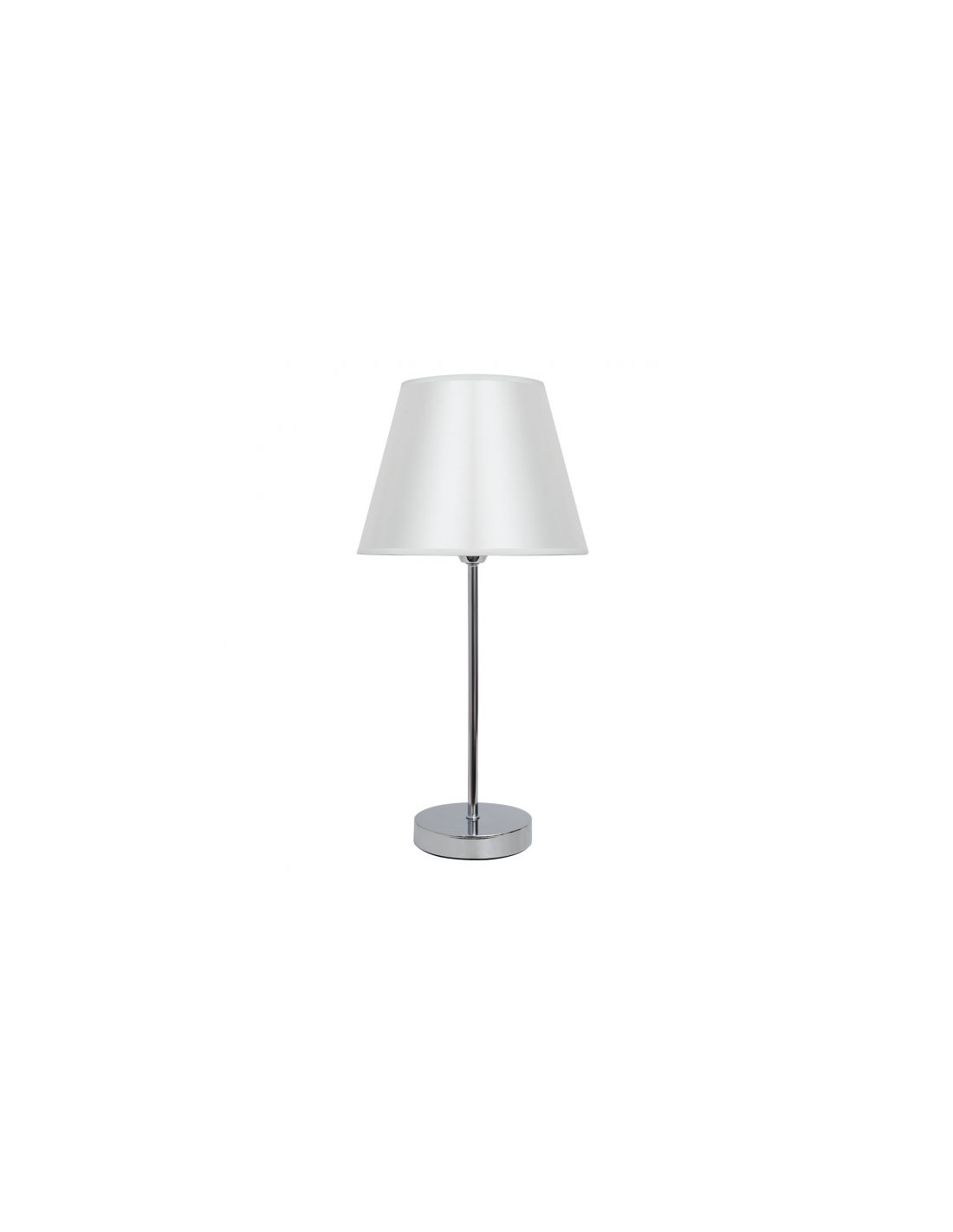 Sobremesa serie Guadalajara de color cromo/blanco. Este sobremesa está realizado en metal y material textil en la pantalla. Forma parte de una familia muy completa compuesta por aplique, lámpara de ocho luces, de cinco luces y tres luces. Sus dimensiones son 50x25x25 cm. El portalámparas es E14.