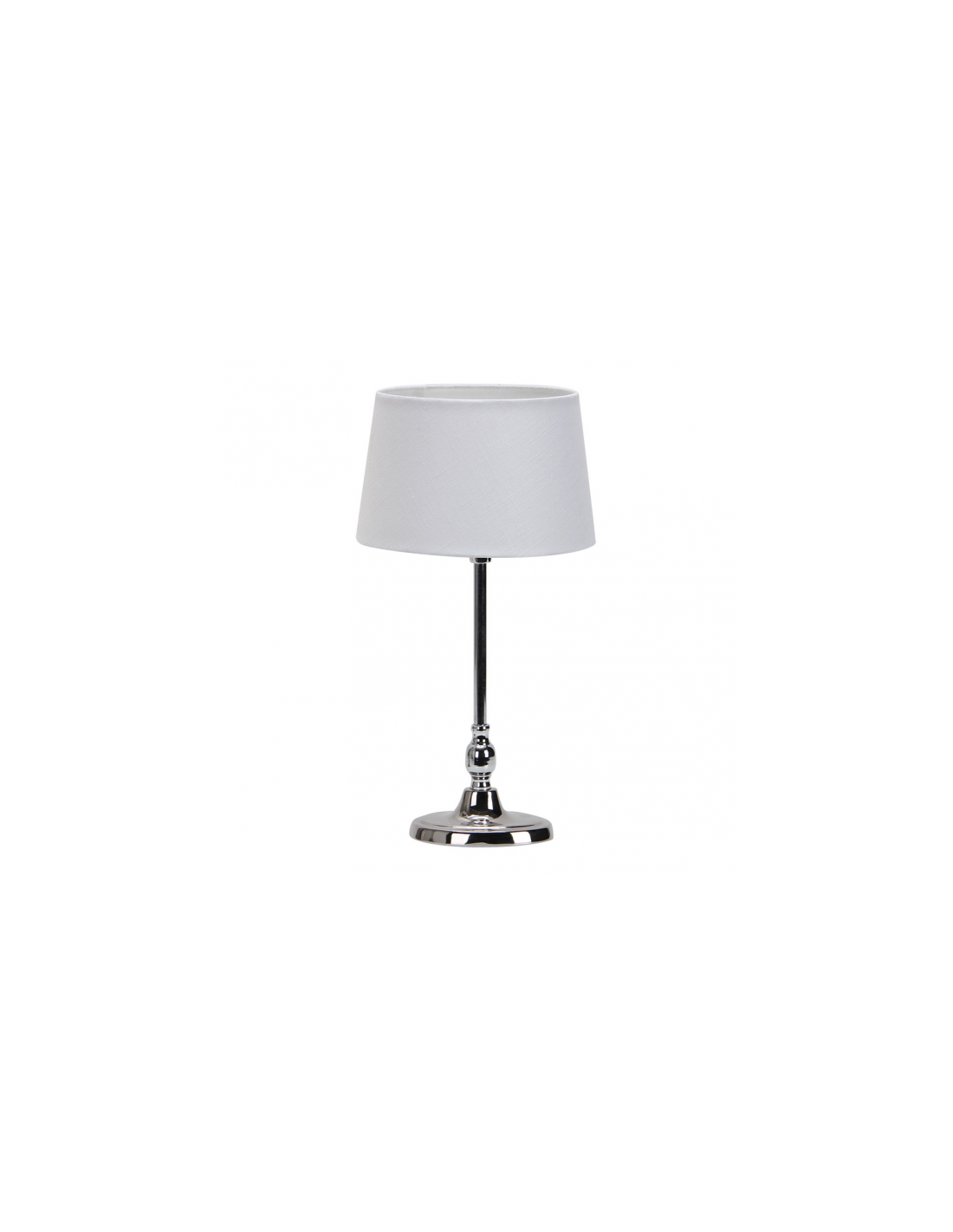 Sobremesa serie Guppy en color CROMO de estilo clásico, sencillo y elegante con pantalla Blanca. Portalámparas E27. Bombilla no incluida. Tiene una medida de 39X20X20 centímetros. Modelo también disponible en color Marrón Rústico/Beis.