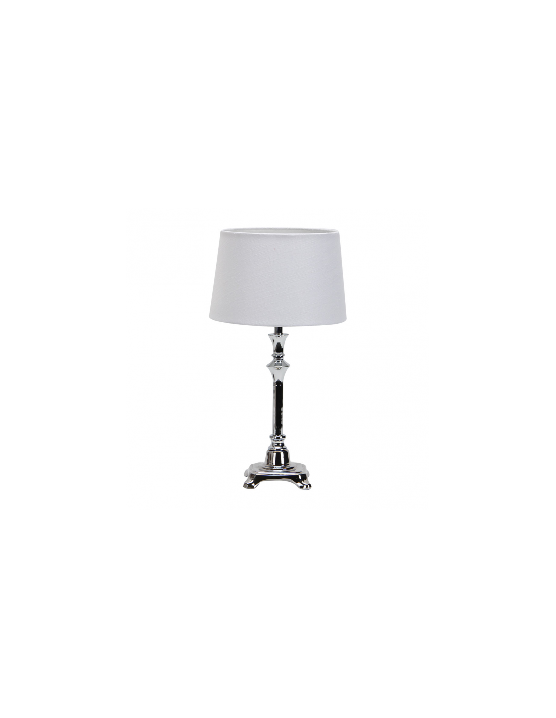 Sobremesa serie Molly en color CROMO de estilo clásico, sencillo y elegante con pantalla Blanca. Portalámparas E27. Bombilla no incluida. Tiene una medida de 39X20X20 centímetros. Modelo también disponible en color Marrón Rústico/Beis.