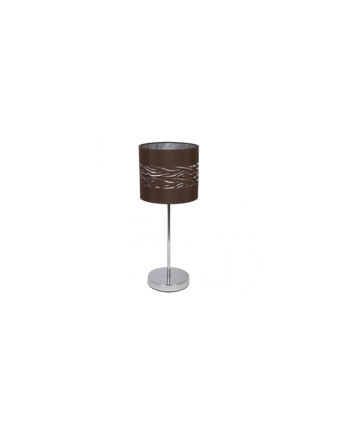 Sobremesa serie NIEBLA en color CROMO con pantalla en MARRON/PLATA. Realizado en metal y textil, se caracteriza por el diseño moderno del dibujo que crea su pantalla calada, dejándose ver el color plata de su interior, resultando una bonita composición para decorar e iluminar cualquier rincón del hogar o lugar de trabajo. Posee un portalámparas E14. Bombilla no incluida. Tiene una dimensión de 43x17x17 centímetros. En esta misma serie podemos encontrar los colgante de 40 y de 50 centímetros de diámetro. Todos también disponible en las combinaciones de colores cromo/blanco-plata, blanco/blanco-oro y marrón/marrón-oro.