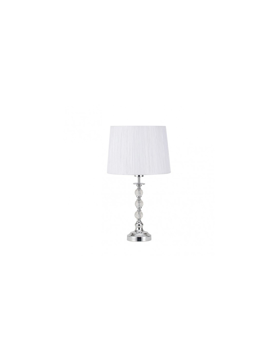 Sobremesa serie Nogal en color CROMO con pantalla tejido bambula Blanca. Cuerpo de metal formado con pequeñas bolas de cristal enzarzadas de diseño elegante y original para iluminar y decorar cualquier rincón de la casa. Portalámparas E27. Bombilla no incluida. Tiene una medida de 52.5X30X30 centímetros. Modelo también disponible en color Cuero/Beis.