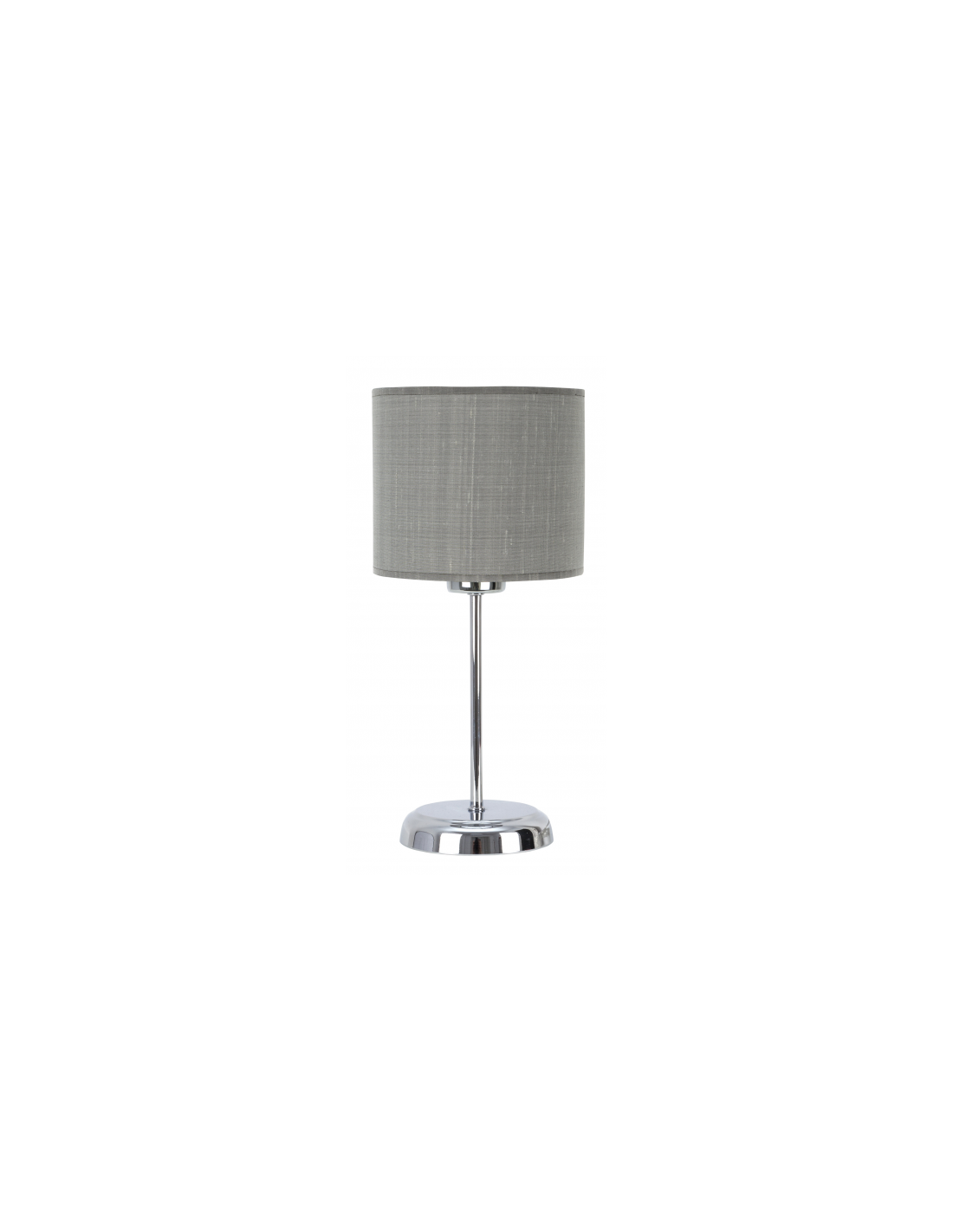Sobremesa serie San Miguel de color gris/cromo. Realizado en metal y material textil. Tiene unas dimensiones de 35X16X16 cm y un peso neto de 600 gr. El armazón está decorado con elementos de cristal. Portalámparas 1xE27. Puede completar la serie con el aplique, lámparas de dos, tres y cuatro luces y colgantes pequeño y grande. Este sobremesa está disponible también color beis/cuero.
