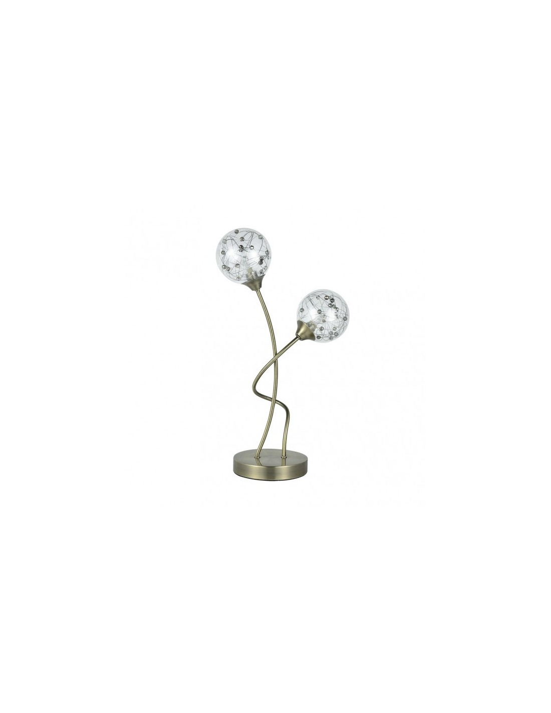 Sobremesa de dos luces serie RIO DE JANEIRO, realizada en metal color CUERO y tulipas de cristal y metal. Diseño moderno y muy original, resaltando además de su forma sus tulipas, dónde el cristal transparente deja ver el entresijo de hilos metálicos con pequeñas lágrimas de cristal de su interior, resultando una composición muy especial para decorar cualquier rincón tanto en salones como en dormitorios con un toque muy personal. Tiene una dimensión de 45x24x14 centímetros y un peso neto 1010 gramos. Posee dos porta lámparas G9. Bombillas no incluidas. Puede completar la decoración de su hogar con la lámpara de tres luces y la lámpara de cinco luces. Disponibles también en color cromo