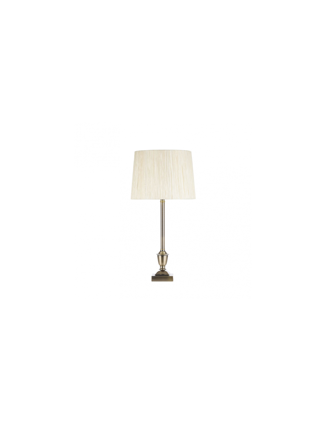 Sobremesa serie Roble en color CUERO de estilo clásico, sencillo y elegante con pantalla de tejido bambula Beis, ideal para decorar e iluminar cualquier rincón de la casa. Portalámparas E27. Bombilla no incluida. Tiene una medida de 60.5X30X30 centímetros. Modelo también disponible en color Cromo/Blanco.