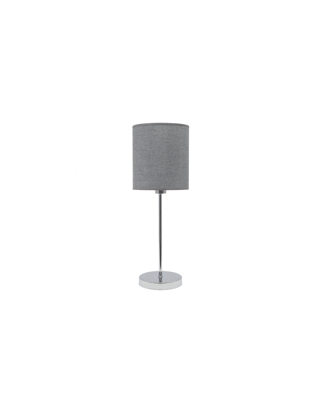 Sobremesa serie Axel de color plata. Este colgante forma parte de una familia muy completa de colgantes de varias medidas, aplique y pie de salón. Está realizado en metal de color cromo y pantalla textil de color plata. Sus dimensiones son 37x17x17 cm y su peso neto 77 g. El portalámparas es E14.