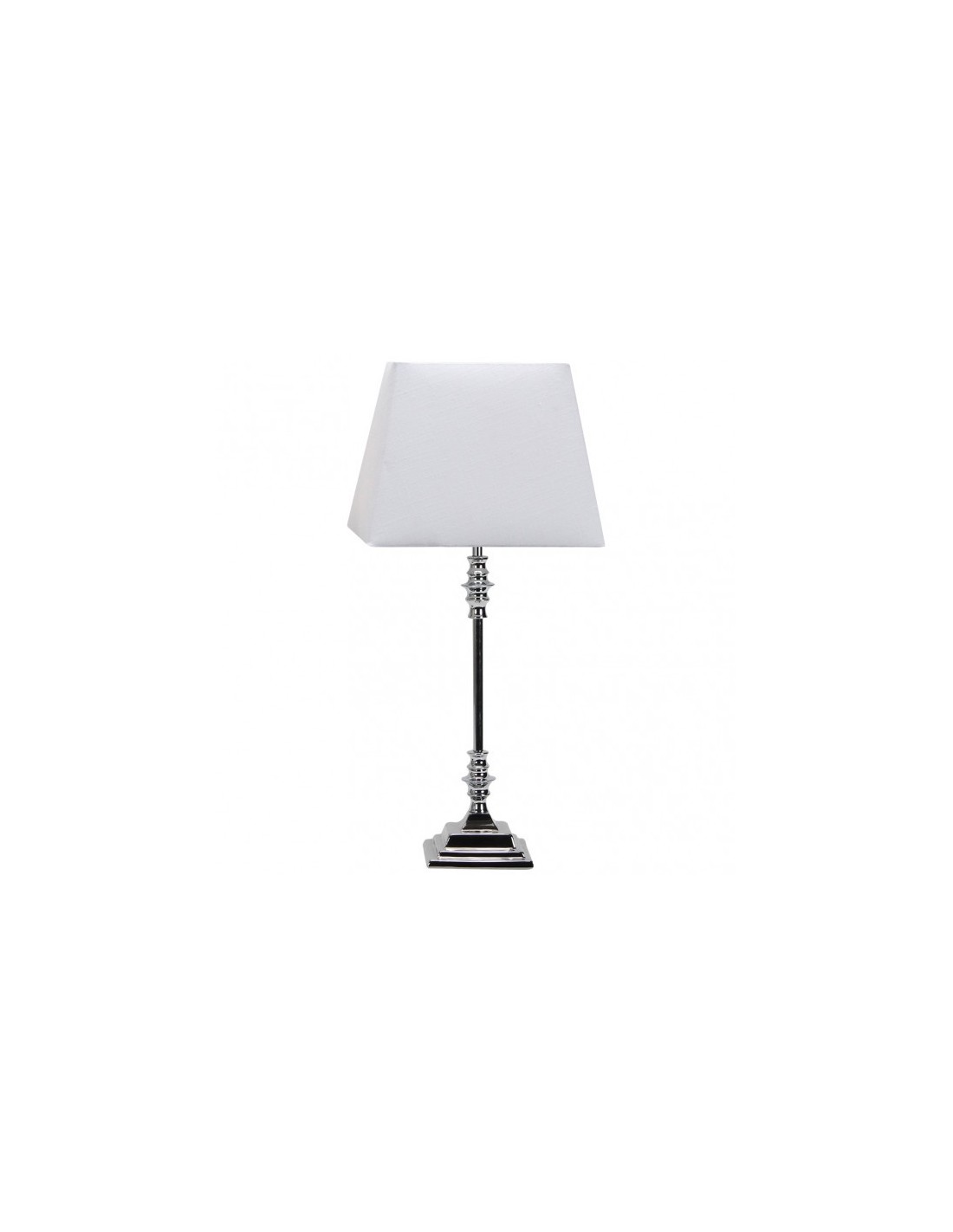 Sobremesa serie Shubunkin en color CROMO de estilo clásico, sencillo y elegante con pantalla cuadrada blanca. Portalámparas E27. Bombilla no incluida. Tiene una medida de 54.5X25X25 centímetros. Modelo también disponible en color Marrón Rústico/Beis.