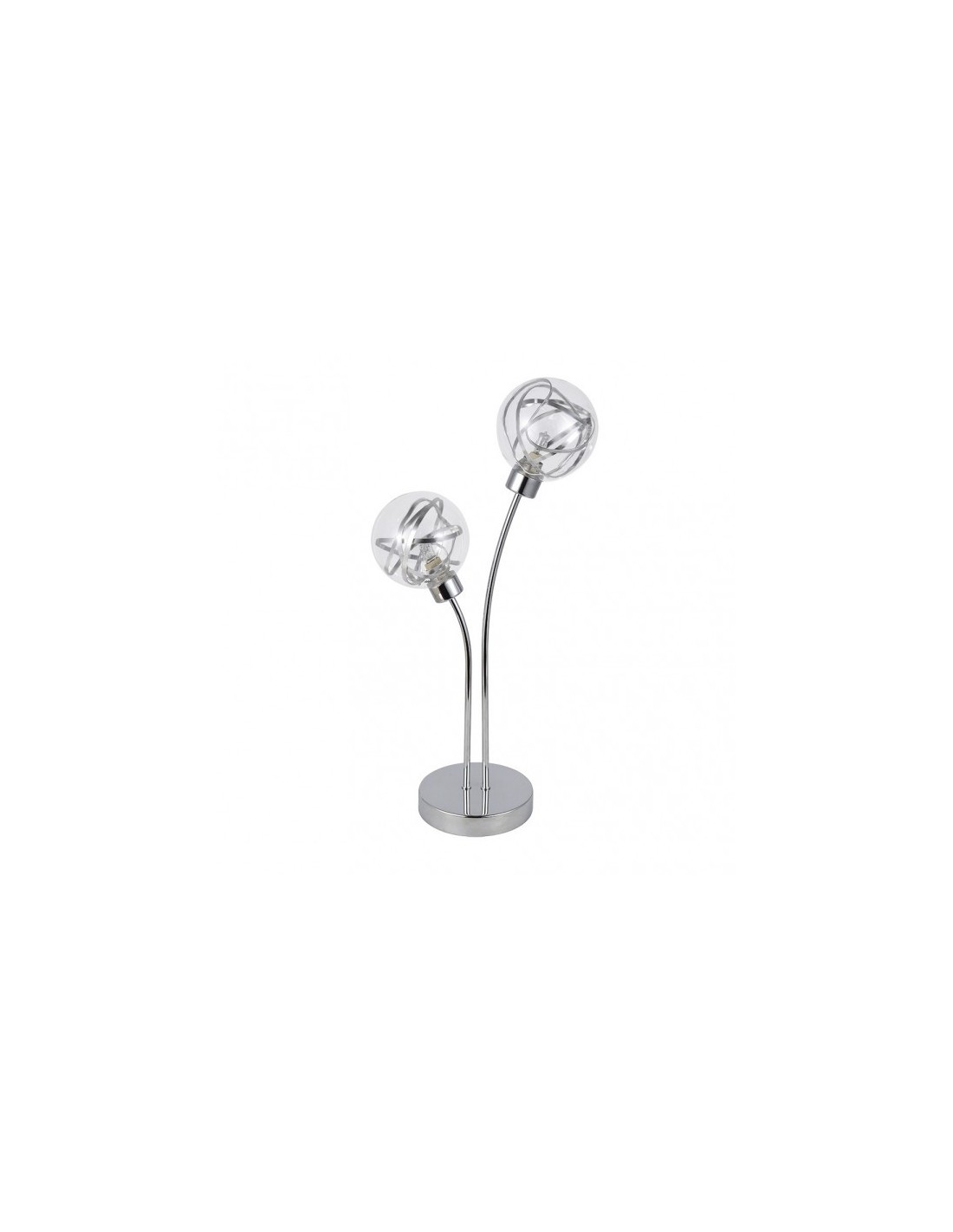 Sobremesa de dos luces serie VARANASI, realizada en metal color CROMO y tulipas de cristal y metal. Diseño moderno y muy original, resaltando además de su forma sus tulipas, en las que el cristal transparente deja ver un entresijo de cintas de metal en su interior, resultando una composición muy especial para decorar cualquier rincón tanto en salones como en dormitorios con un toque muy personal. Tiene una dimensión de 46x27x13 centímetros y un peso neto 700 gramos. Posee dos porta lámparas en G9. Bombillas no incluidas. Puede completar la decoración de su hogar con las lámparas de cuatro y seis luces y los plafones de cuatro y seis luces. Todos los modelos también en color cuero.