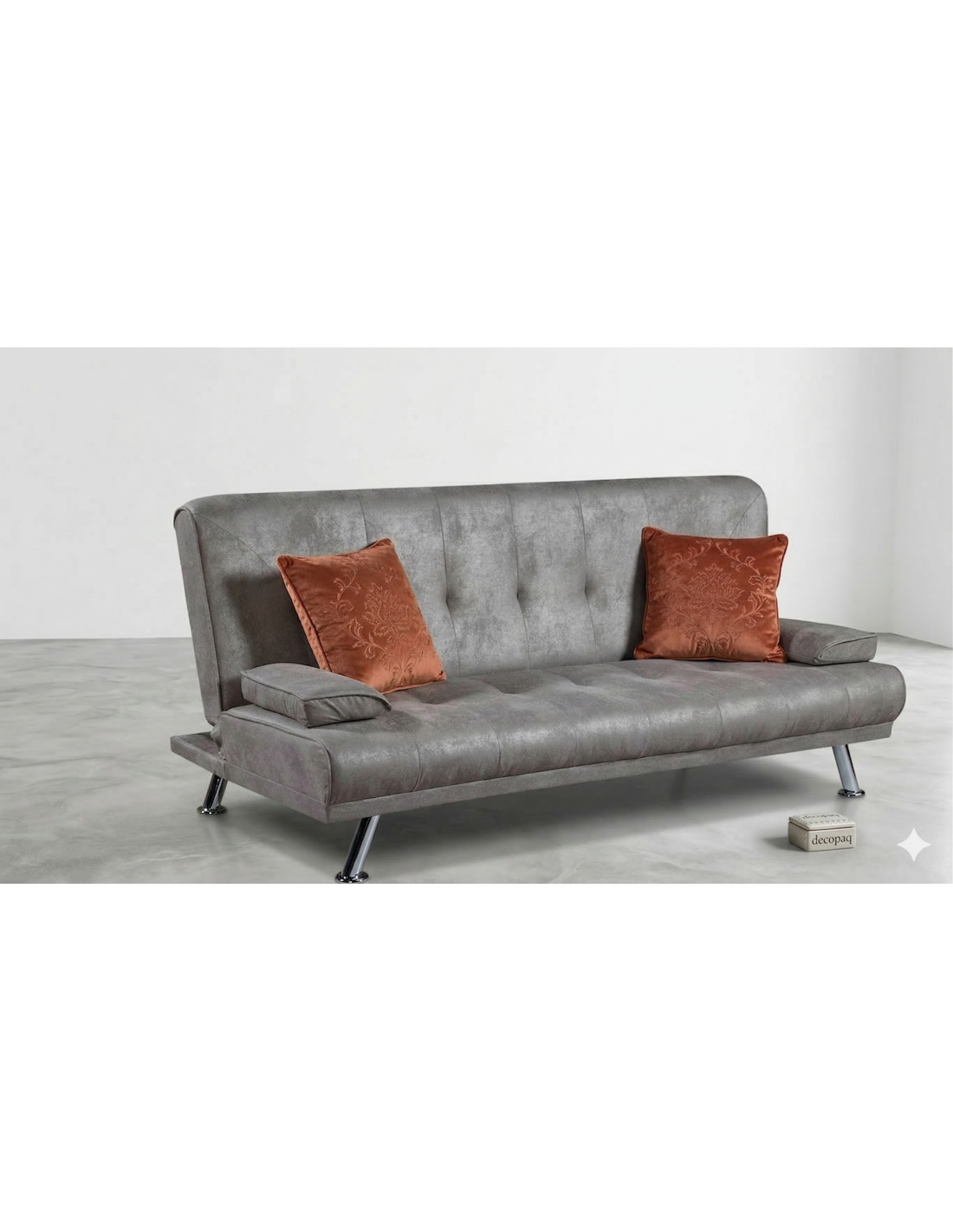 El Modelo Cesto es la fusión perfecta de estilo retro y funcionalidad moderna. Este sofá cama clic-clac destaca por su tapizado en microfibra texturizada gris de alta calidad y su elegante diseño capitoné. Soportado por estilizadas patas cromadas, aporta un toque 'mid-century' sofisticado a cualquier salón o estudio, transformándose en una cómoda cama para invitados en cuestión de segundos.