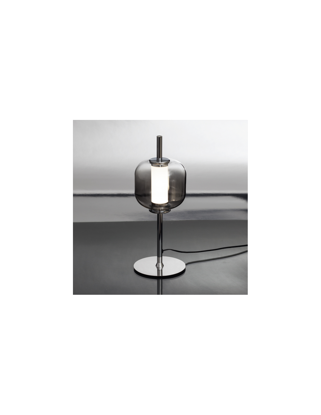 Sobremesa serie Malvina de color cromo. Este sobremesa está realizada en metal y cristal ahumado con tecnología de Led integrado. Posee 5W de potencia, 360 lúmenes y un color de luz de 4000ºk de luz neutra. Sus medidas son 29x11,5x11,5 cm.