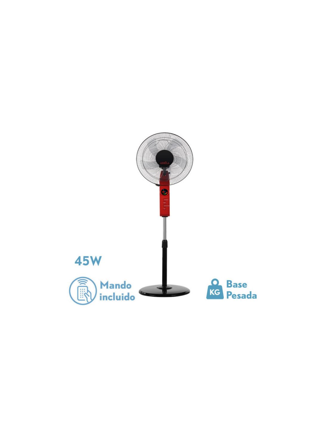 Descubre la Serie CIRCUS: un ventilador versátil en Rojo/Negro o Beis/Negro con cinco aspas para una óptima circulación. Tres velocidades, pantalla digital y control remoto hacen que su uso sea sencillo. Además, ahorra energía con su temporizador de 1 a 8 horas. Su diseño moderno y dos posiciones ajustables lo hacen perfecto para cualquier espacio.