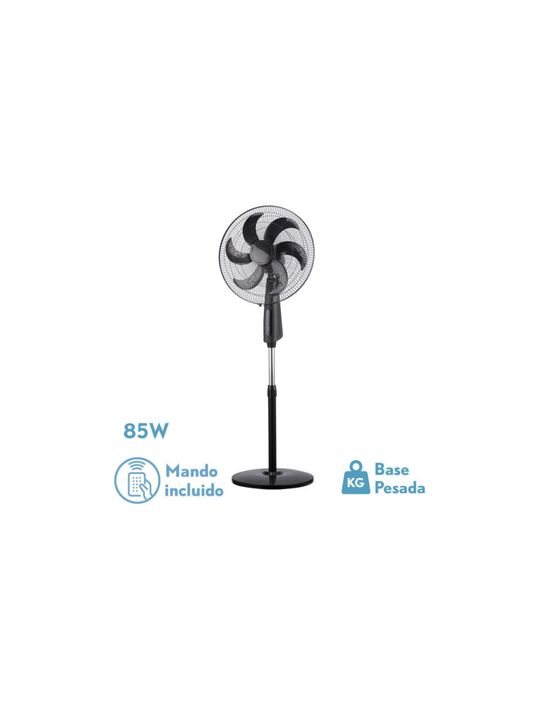 Experimenta la potencia y versatilidad con el Ventilador de Pie TOLON en elegante Negro. Con seis aspas, tres velocidades y tres modos de aire, ofrece un control total sobre la circulación. Incluye mando a distancia y temporizador de hasta 9 horas para comodidad adicional.