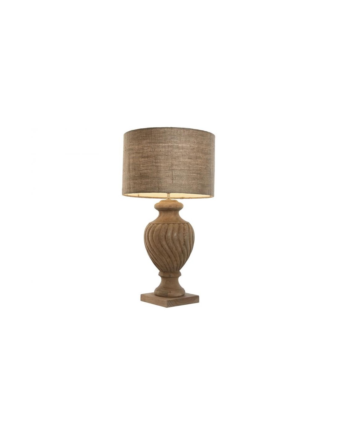 Lampara Sobremesa Madera Yute 47x47x87 Tallada