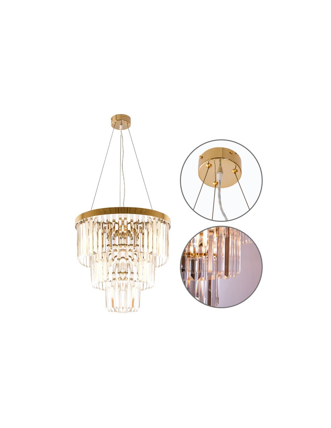 Lámpara de techo OLFUS 5xE14 A.42xD.45cm c/cristales transparentes y chapa dorada
