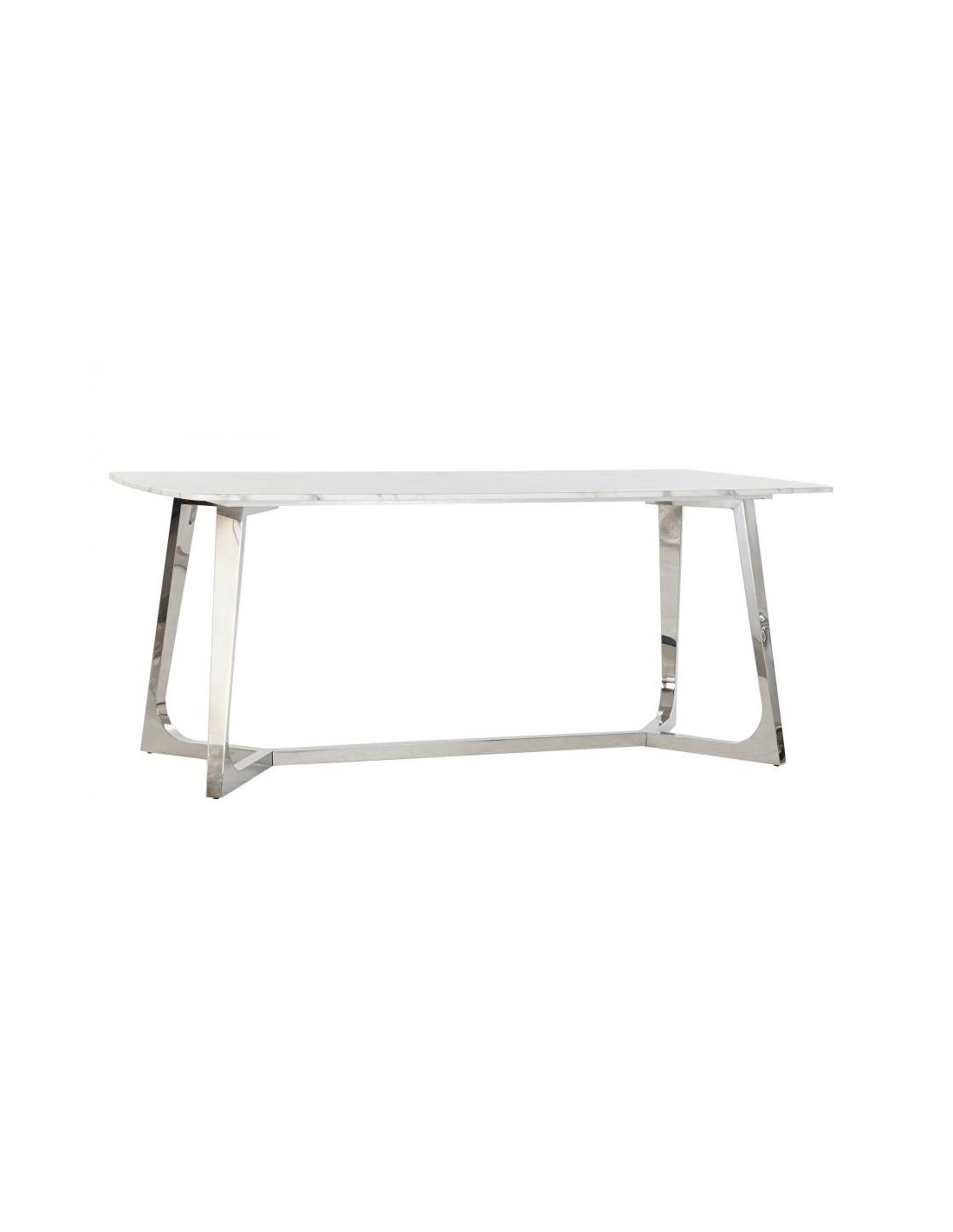 Mesa Comedor Acero Marmol 180x90x76 Plateado