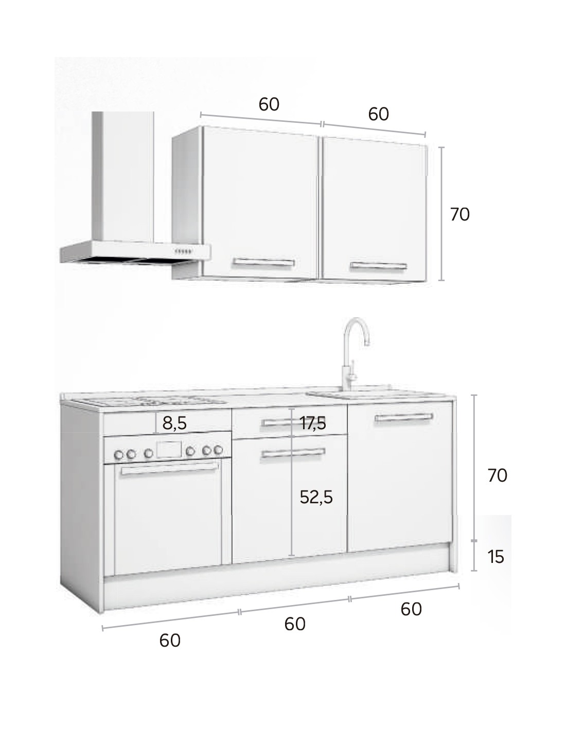 Moderna cocina que destaca por su elegancia y eficiencia. Gracias a su amplio espacio de almacenamiento y su zona de trabajo, esta cocina es el complemento ideal para su hogar. Su estética simple y minimalista será el componente perfecto para un espacio de cocina eficiente sin perder ni un ápice de estilo.