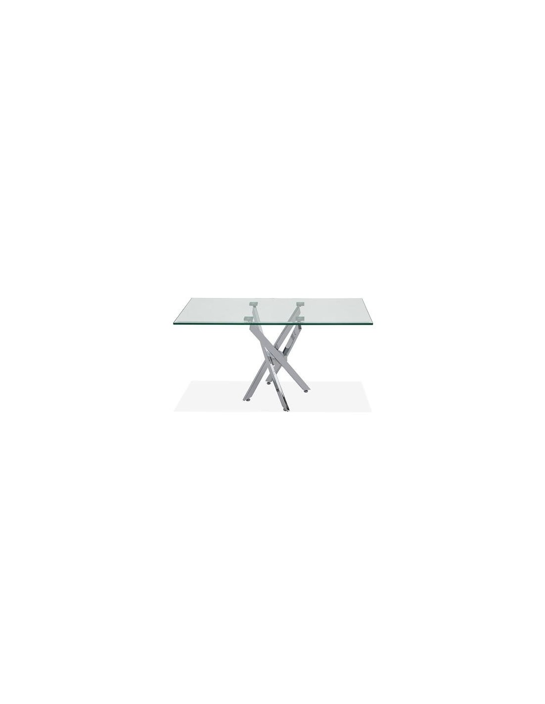 La puedes utilizar como consola o como mesa auxiliar de planta rectangular con tapa de cristal templado y potente base metálica cromada con estilizadas barras que parecen formar una espiral que la hacen especialmente atrayente.