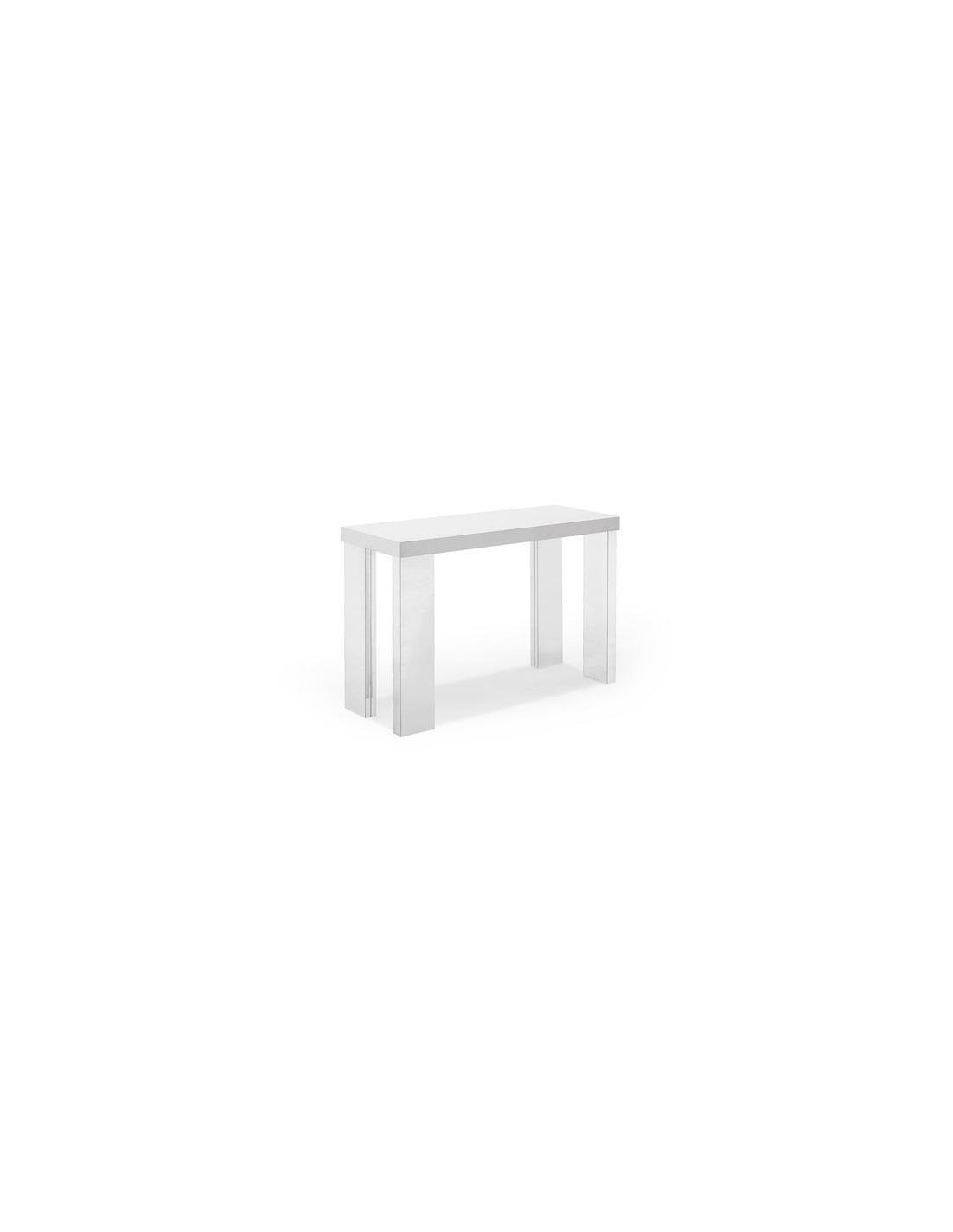 La puedes utilizad de consola o elegante mesa minimalista, con tablero en MDF con revestimiento melaminado en varios colores y patas rectangulares asimétricas en chapa de acero inoxidable.