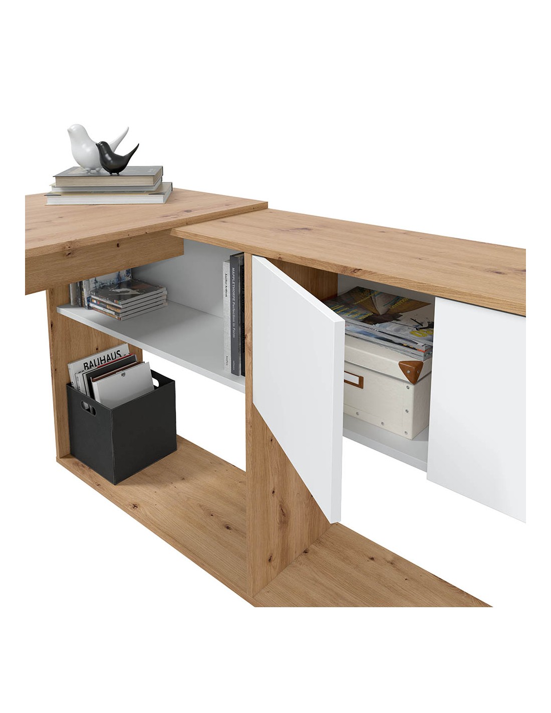 Mesa escritorio-estanteria (vertical-horizontal) Roble Nodi / Blaco Artik DUO