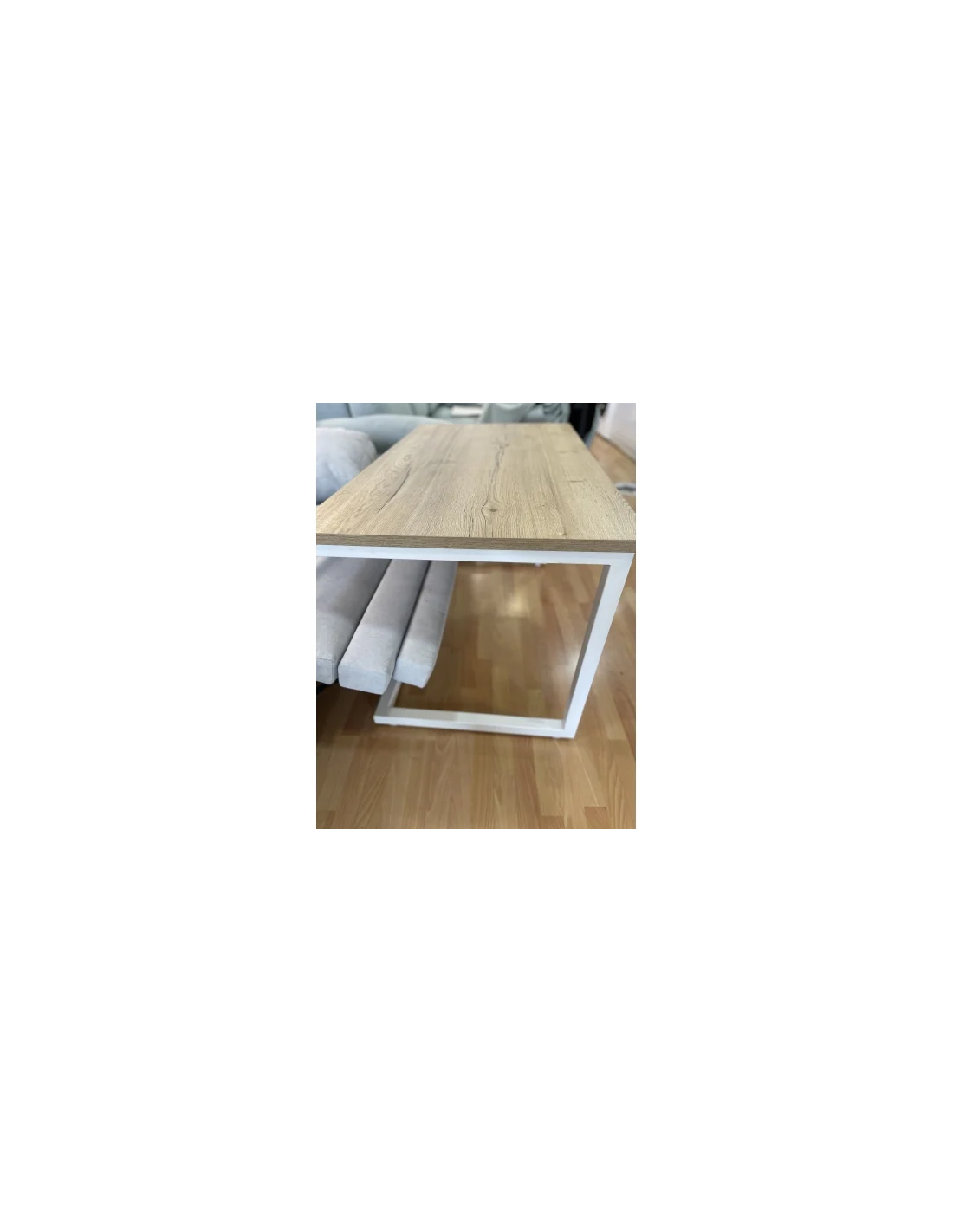 Mesa Camilla Rectangular de Forja Relax - Color Blanco - Encimera de Madera con Vetas Negras