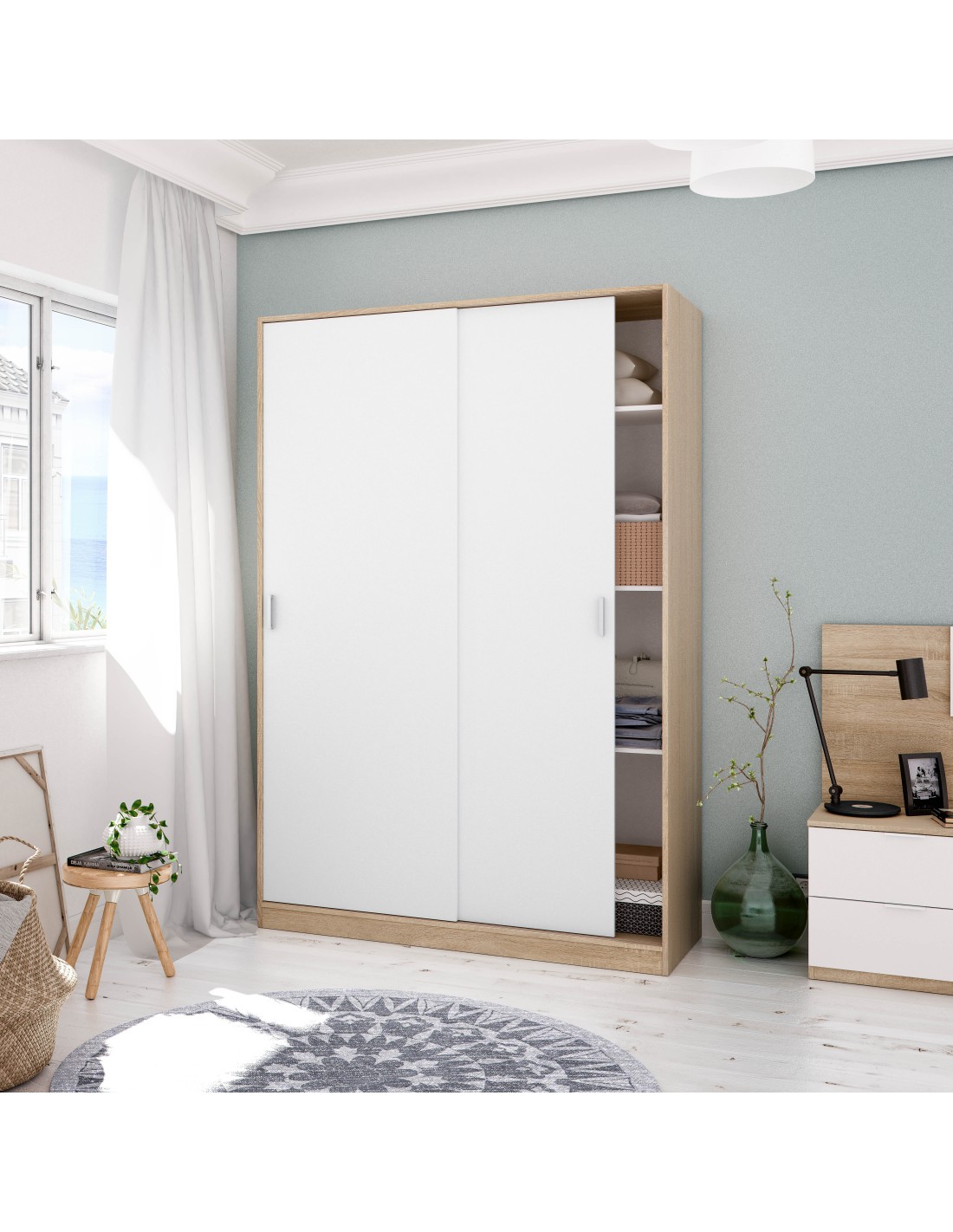 Armario NOON PLUS 2 Puertas correderas Roble Canadian - Blanco Artik
