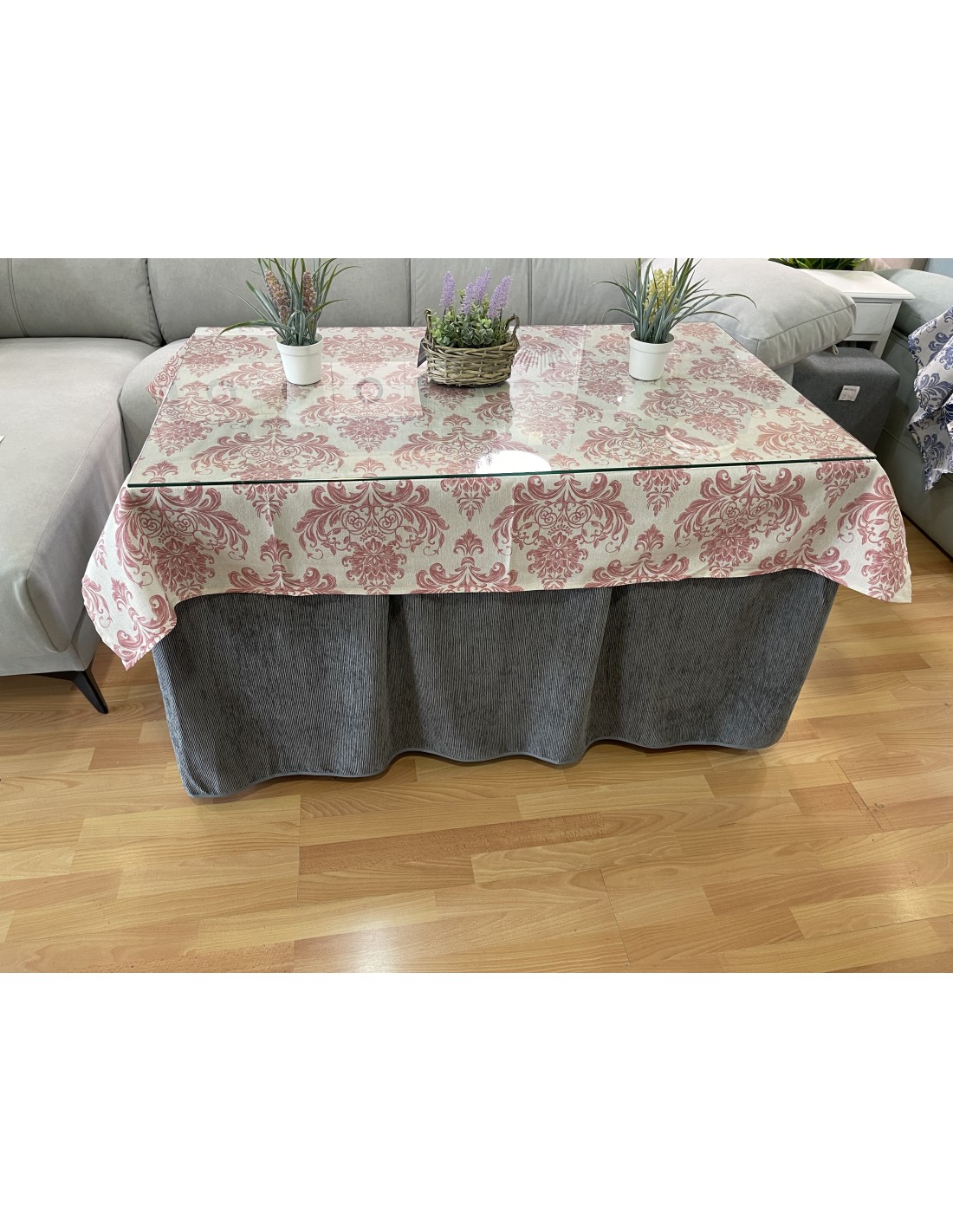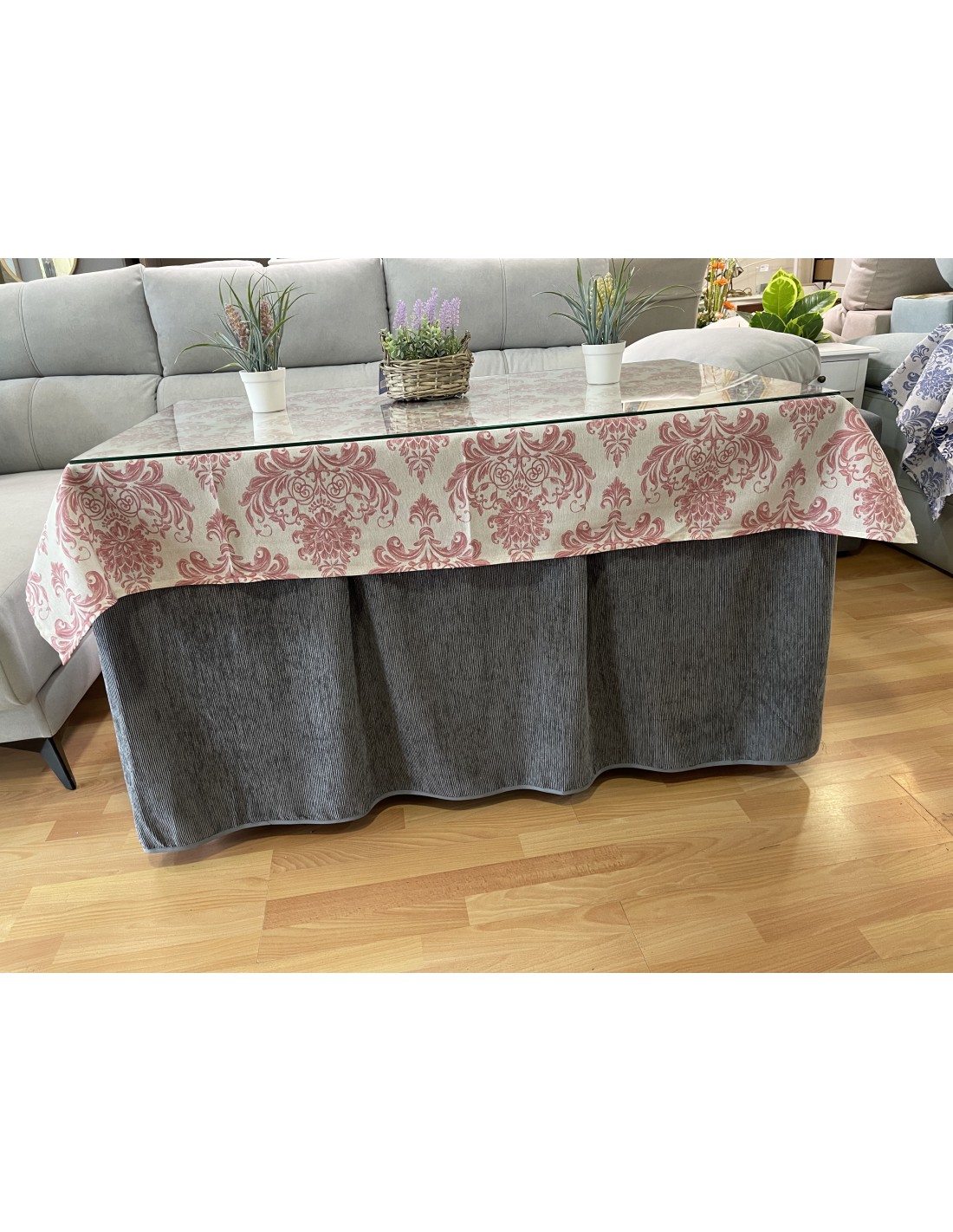 Ropa Chenilla Eco 8 Pliegues color Gris con tapete antimanchas luxe Rosa
