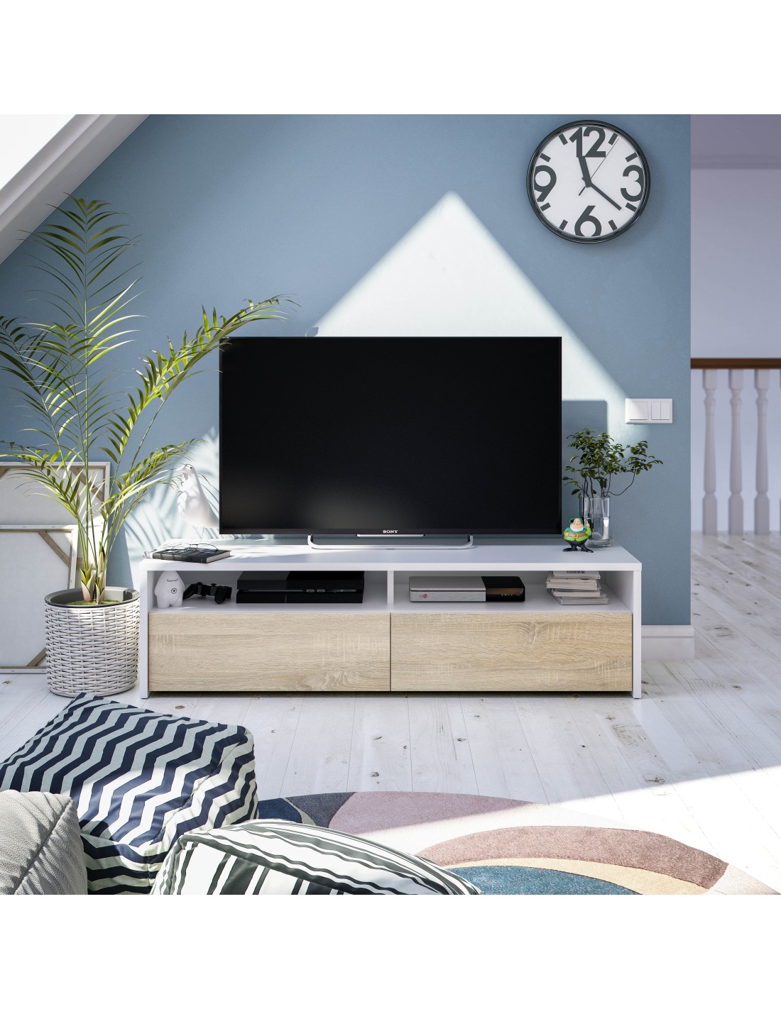 Mueble TV 2 Puertas Blanco Artik/Roble canadian TOKIO