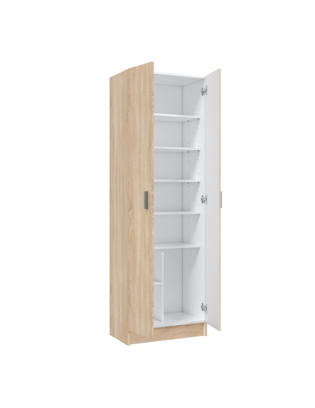 Armario de 2 puertas con 5 estantes regulables en altura.