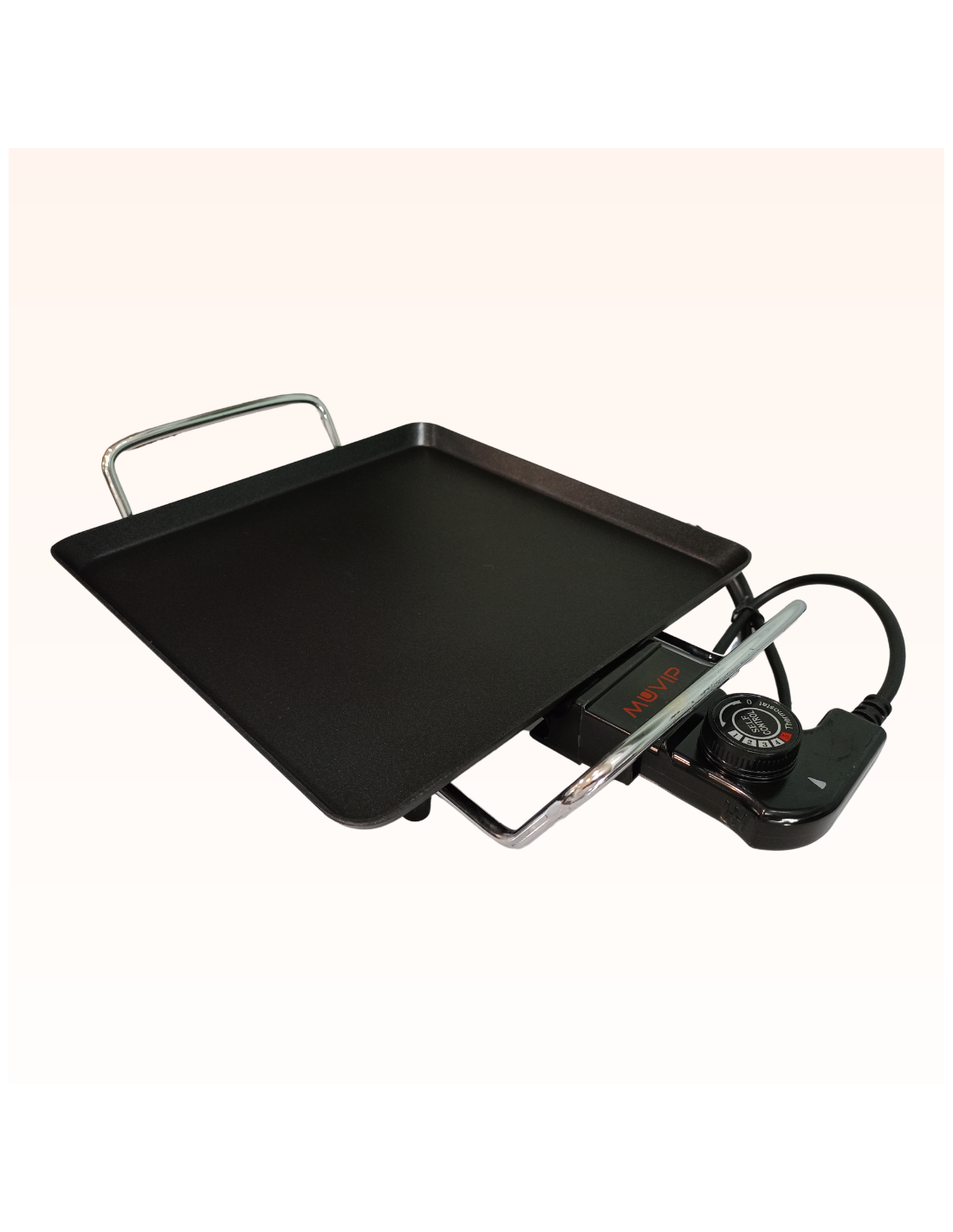 Plancha de asar de la marca Muvip, con potencia de 1500W y un tamaño de 28 x 28 cm.