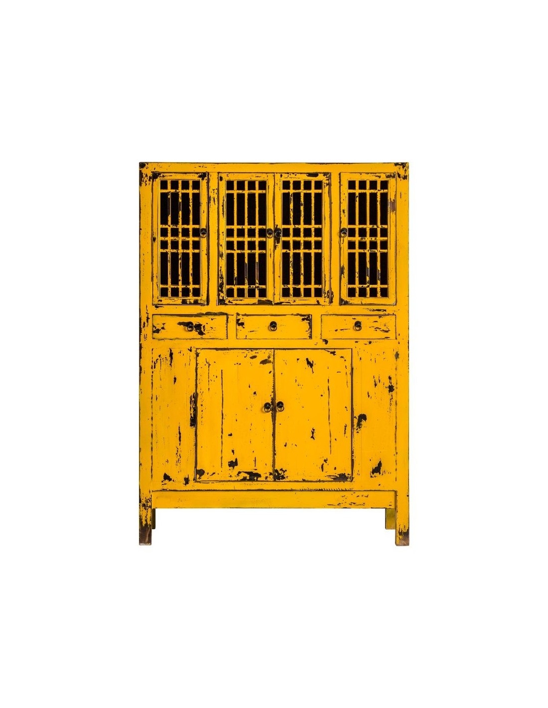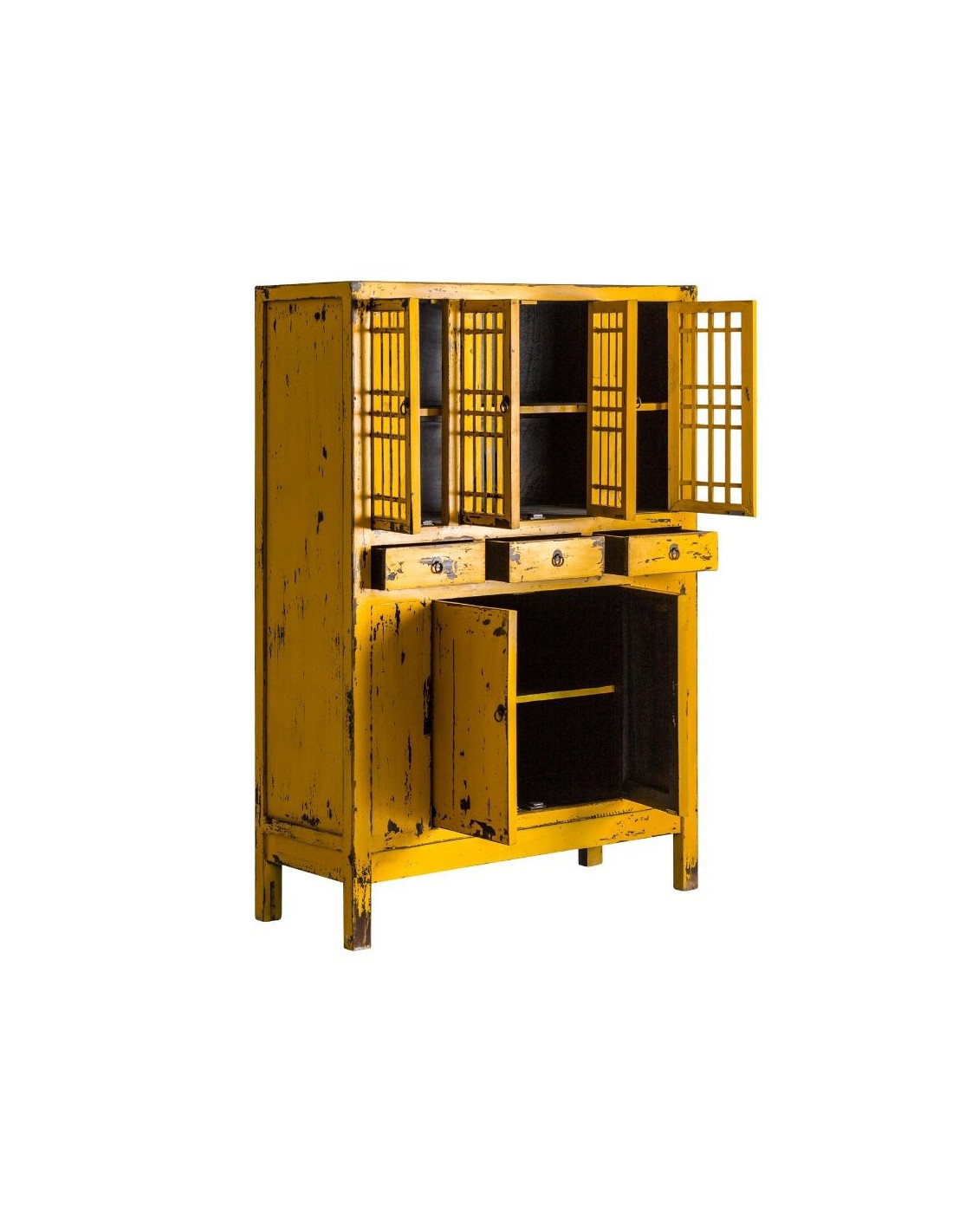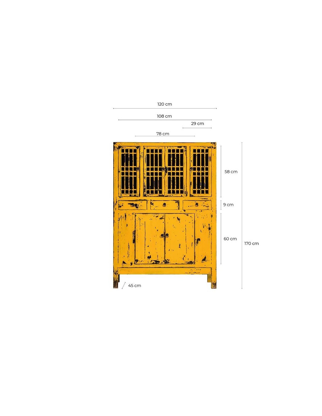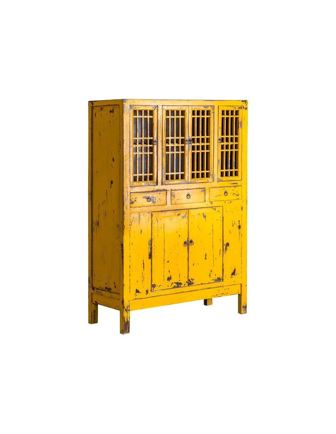 Armario Jinan, En Color Mostaza Envejecido, De Estilo Kitsh. Fabricado En Madera De Pino Reciclado.