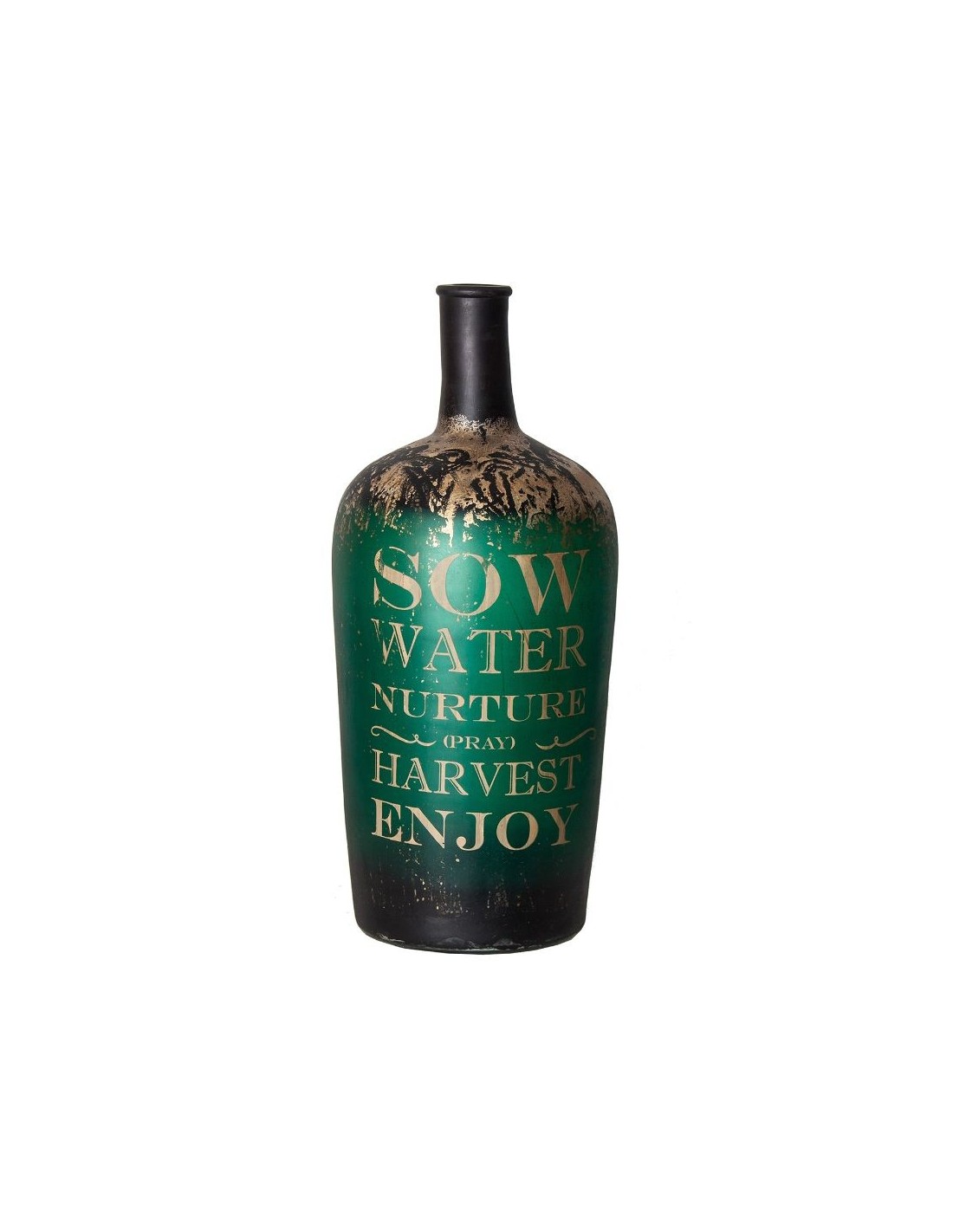 Botella Decorativa Bosler, En Color Verde Envejecido, De Estilo Vintage. Fabricado En Vidrio.